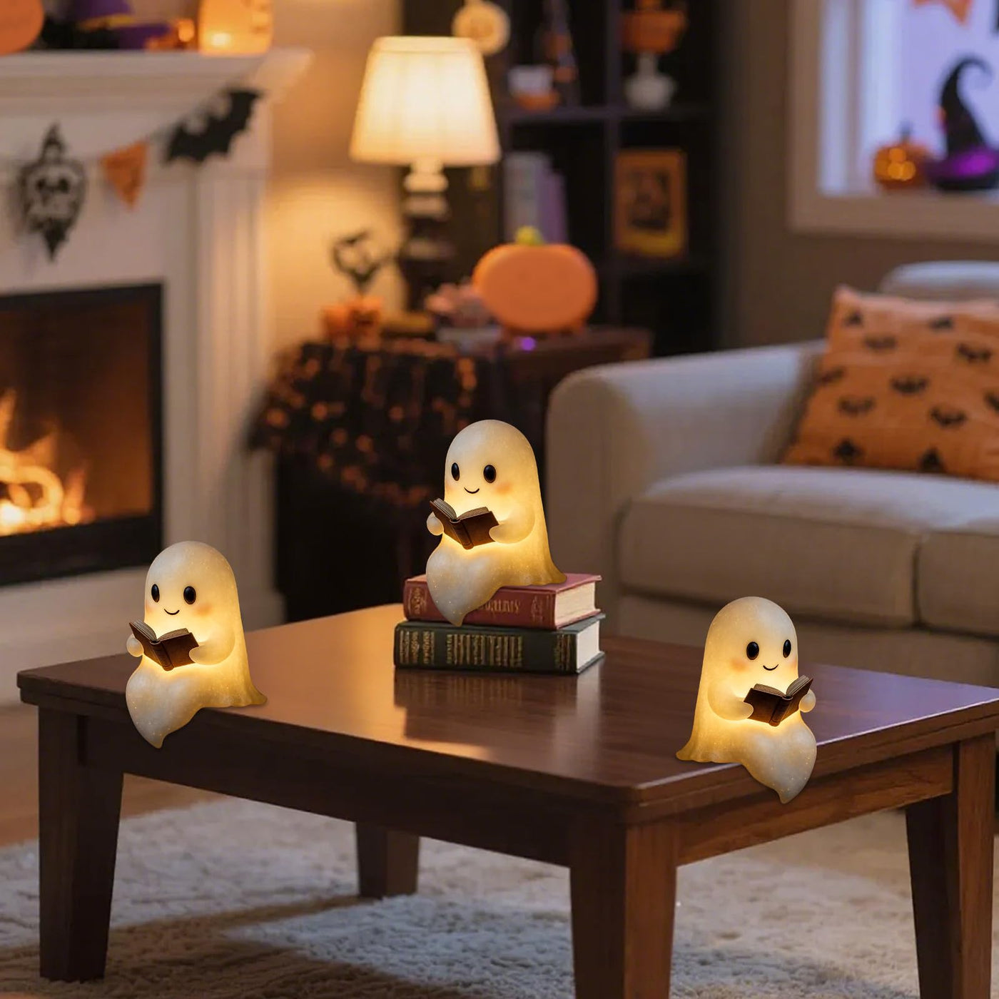 Qetrabone Halloween Ghost Reading Book Lamp Funny Ghost Figurine Statue Halloween Decoration For Gift Props Tabletop Bookshelf Home Decor