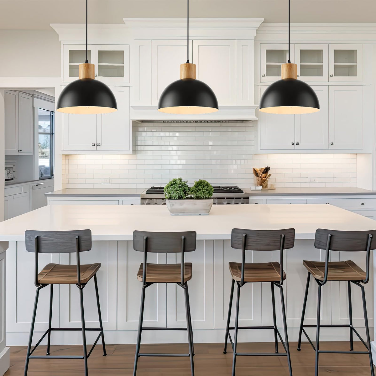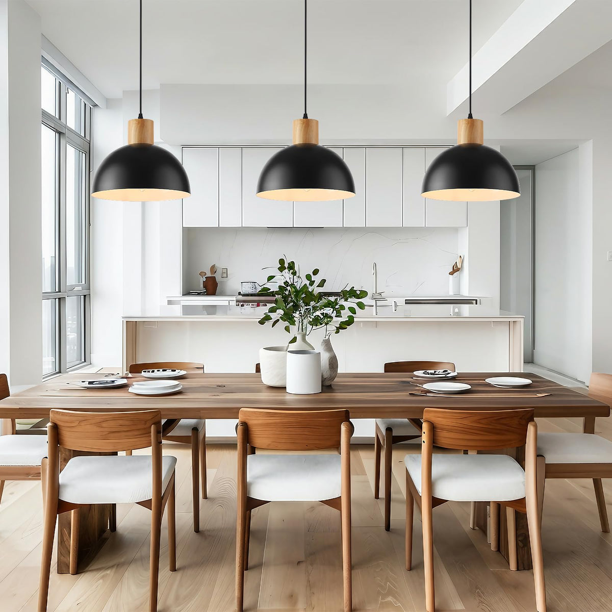 Qianzhan Black Solid Wood Pendant Light, 11.8'' Dome Pendant Lights Fixtures Adjustable Modern Hanging Lighting,For Kitchen Isla