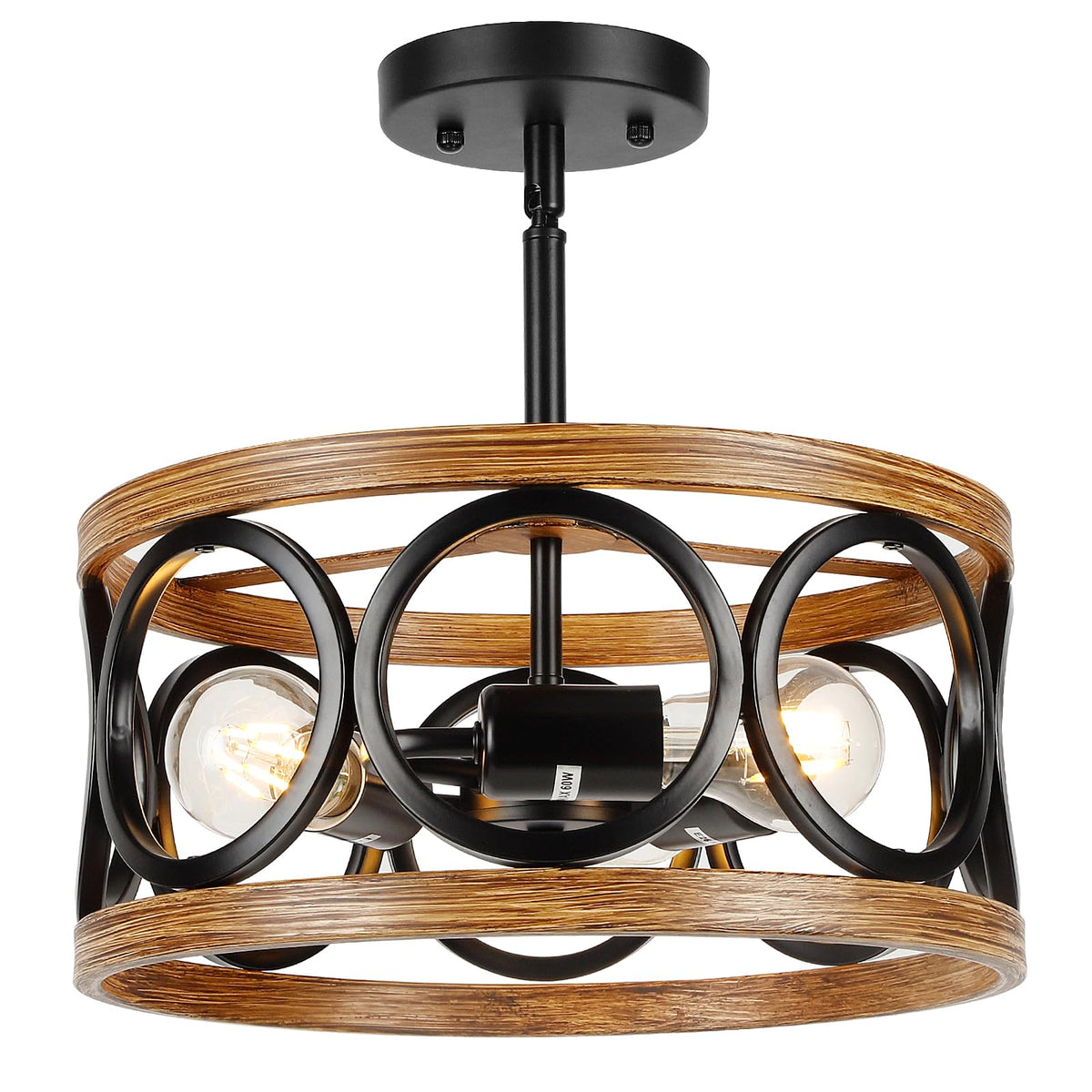 Q: What type of bulbs can be used with the QianZhan Farmhouse Semi Flush Mount Ceiling Light?A: The QianZhan Farmhouse Semi Flush Mount Ceiling Light is compatible with E26 standard American lamp holders. You can use various types of bulbs including Edison, CFL, or LED bulbs, with a maximum power of 60W.