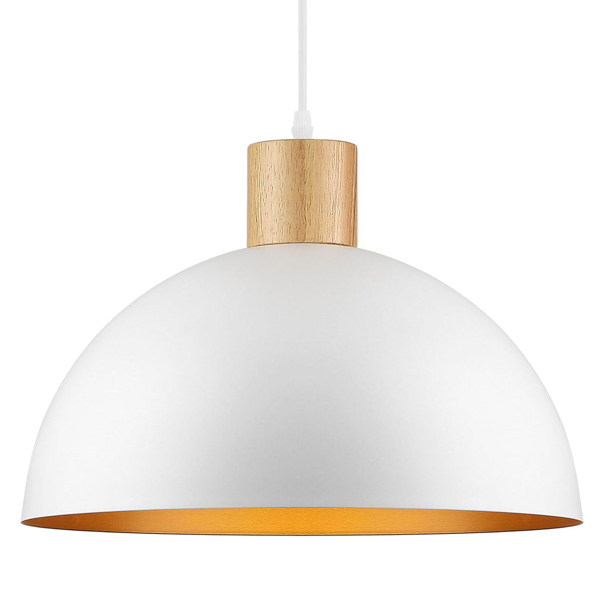 Qianzhan White Pendant Light, 16'' Wood Dome Pendant Lights Fixtures Adjustable Large Modern Hanging Lighting, For Kitchen Islan