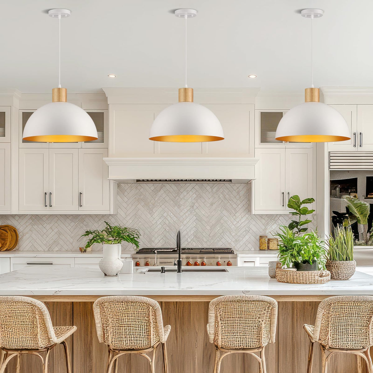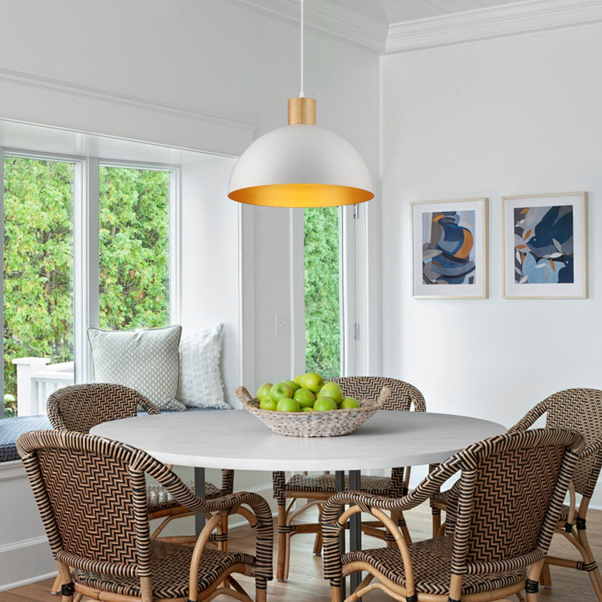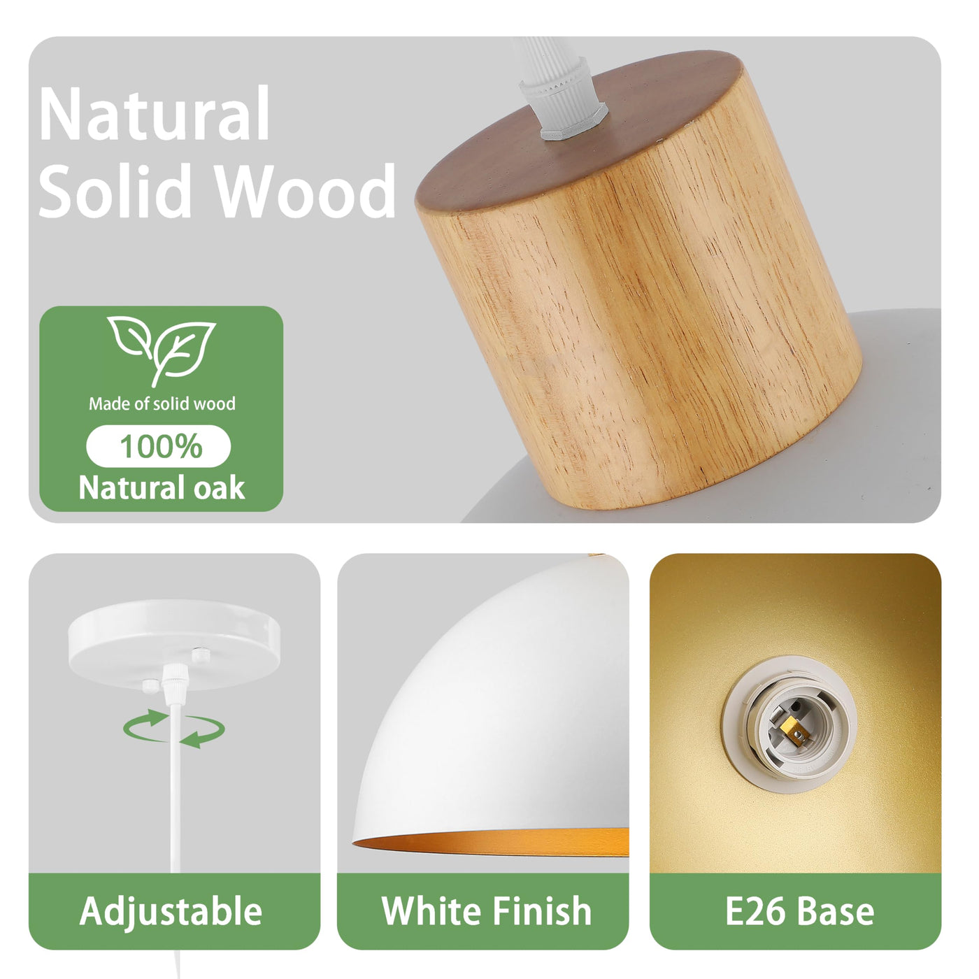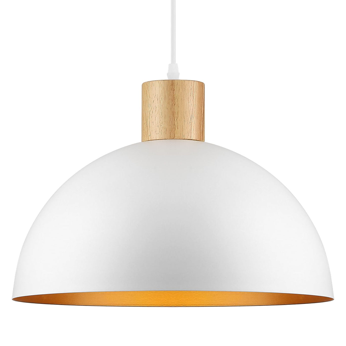 White Pendant Light, 16'' Wood Dome Pendant Lights Fixtures Adjustable Large Modern Hanging Lighting, For Kitchen Island Dining Room Farmhouse Bar Restaurant