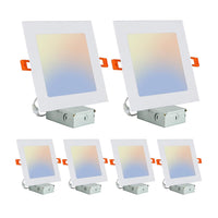 Qibang 3Cct 6 Pack 6 Inch Square Led Recessed Lights Dimmable Canless Wafer Downlight With J-Box,3000K/4000K/6000K Selectable,11