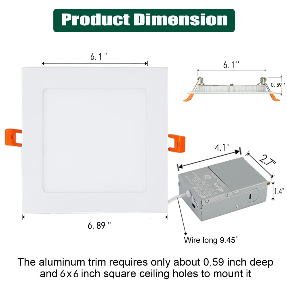 3Cct Ultra-Thin Square Recessed Lights 6 Inch With Junction Box. Are You Looking For A Downlight For Your Home Lighting But Not Sure What Color To Pick? Are You Tired Of Old-Version Recessed Lighting That Required A Can Housing? Are You Worried About Your Ceiling Space Is Not Large Enough To Install? Don'T Worry, Qibang Ultra-Thin Led Recessed Lighting Is Just What You Need To Take All The Hassles Away!! Ultra-Thin Led Recessed Lights. 1100Lm High Brightness Three Color Temperature Selectable No Flickering, Flashing, And Humming Noise Wattage: 12W 3 Color In One : 3000K Warm White, 4000K Natural White, 6000K Daylight Luminous Flux: 1100Lm5% Cri >90 Ip Rating: Ip20 Dimmable: 5%-100% Dimming Input Voltage: Ac110V-120V Material: Aluminum Dimension: 6.89'' X 6.89'' X 0.59'' 1.Turn Off The Home Power First. 2.Cut A Appropriate Hole On Ceiling According To Product Cut-Hole Size. 3.Connect The Led Transformer To The Power Supply. 4.Pull Up The Spring Clips And Insert The Light Fixture To The Hole. 5.Adjust It To Hook The Ceiling Tightly.