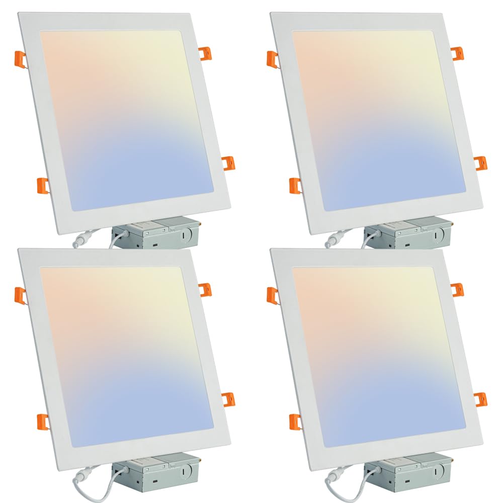 Qibang 4 Pack 11 Inch Square Led Recessed Lighting Dimmable With Junction Box,3Cct 3000K- 6000K Selectable,Cri90+ 2160Lm 24W Squ