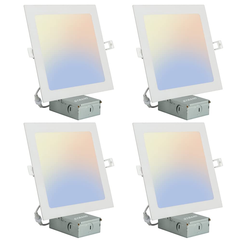 Qibang 4 Pack 8 Inch Square Led Recessed Lights Dimmable With Junction Box,3Cct 3000K-4000K-6000K Selectable,1600Lm Cri90+ 18W U