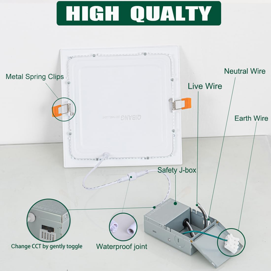3Cct Ultra Thin Square Led Recessed Light 8 Inch Dimmable With Junction Box. Are You Looking For A Downlight For Your Home Lighting But Not Sure What Color To Pick? Are You Tired Of Old-Version Recessed Lighting That Required A Can Housing? Are You Worried About Your Ceiling Space Is Not Large Enough To Install?Don'T Worry!Qibang Ultra Thin Led Recessed Lights Is Just What You Need To Take All The Hassles Away!! Ultra-Thin Led Recessed Lighting Fixtures 1600Lm High Brightness Three Color Temperature Selectable No Flickering, Flashing, And Humming Noise Wattage: 18W 3 Color In One: 3000K Warm White, 4000K Natural White, 6000K Daylight Luminous Flux: 1600Lm5% Cri >90 Ip Rating: Ip20 Dimmable: 5%-100% Dimming Input Voltage: Ac110V-120V. Material: Aluminum Dimension: 8.66'' X 8.66'' X 0.59'' 1.Turn Off The Home Power First. 2.Cut A Appropriate Hole On Ceiling According To Product Cut-Hole Size. 3.Connect The Led Transformer To The Power Supply. 4.Pull Up The Spring Clips And Insert The Light Fixture To The Hole. 5.Adjust It To Hook The Ceiling Tightly