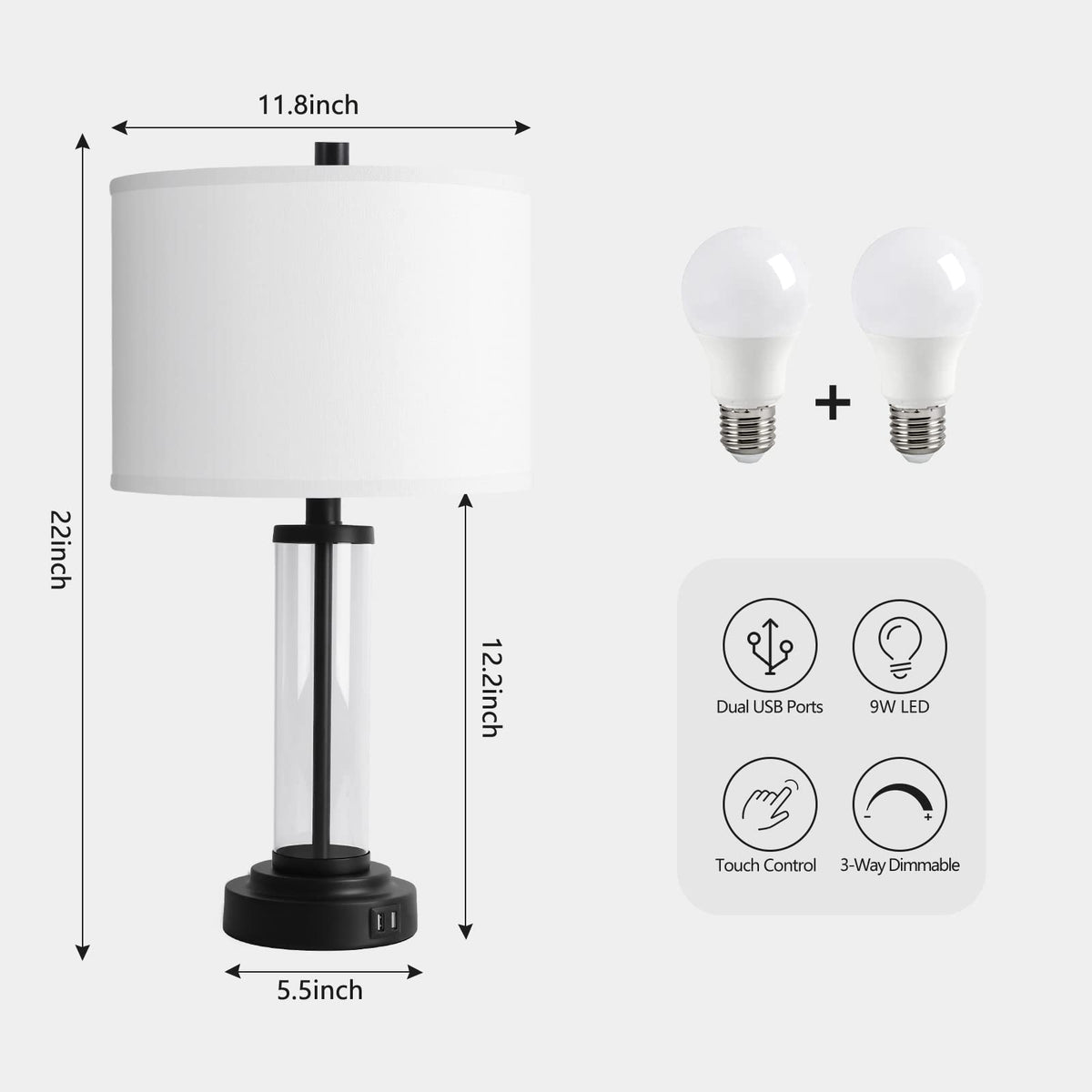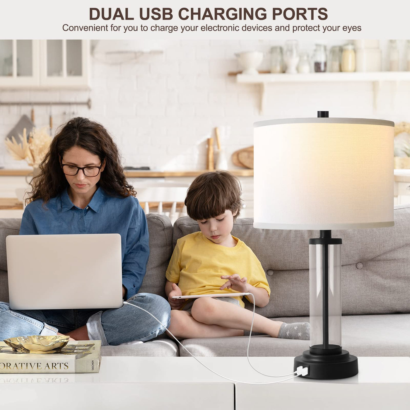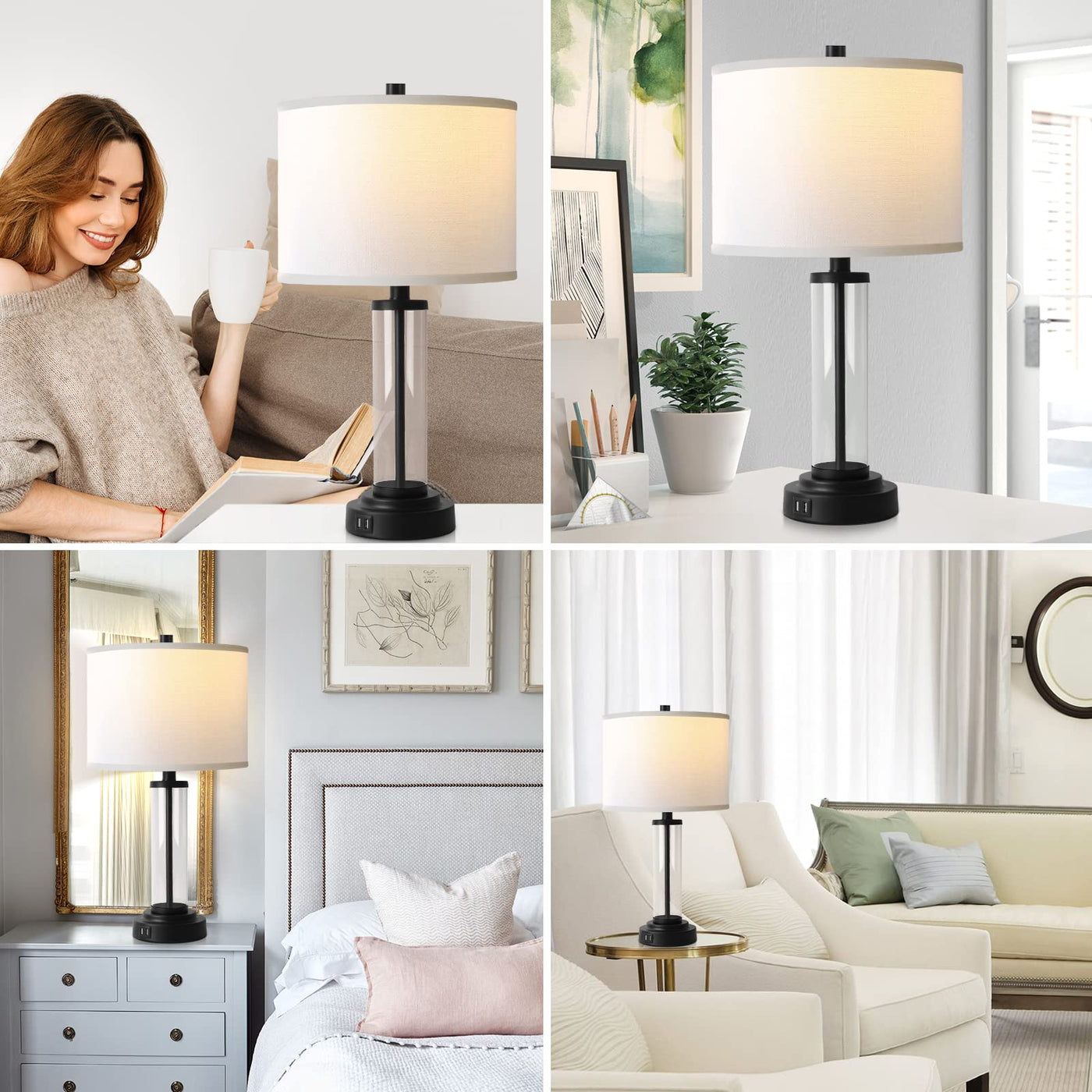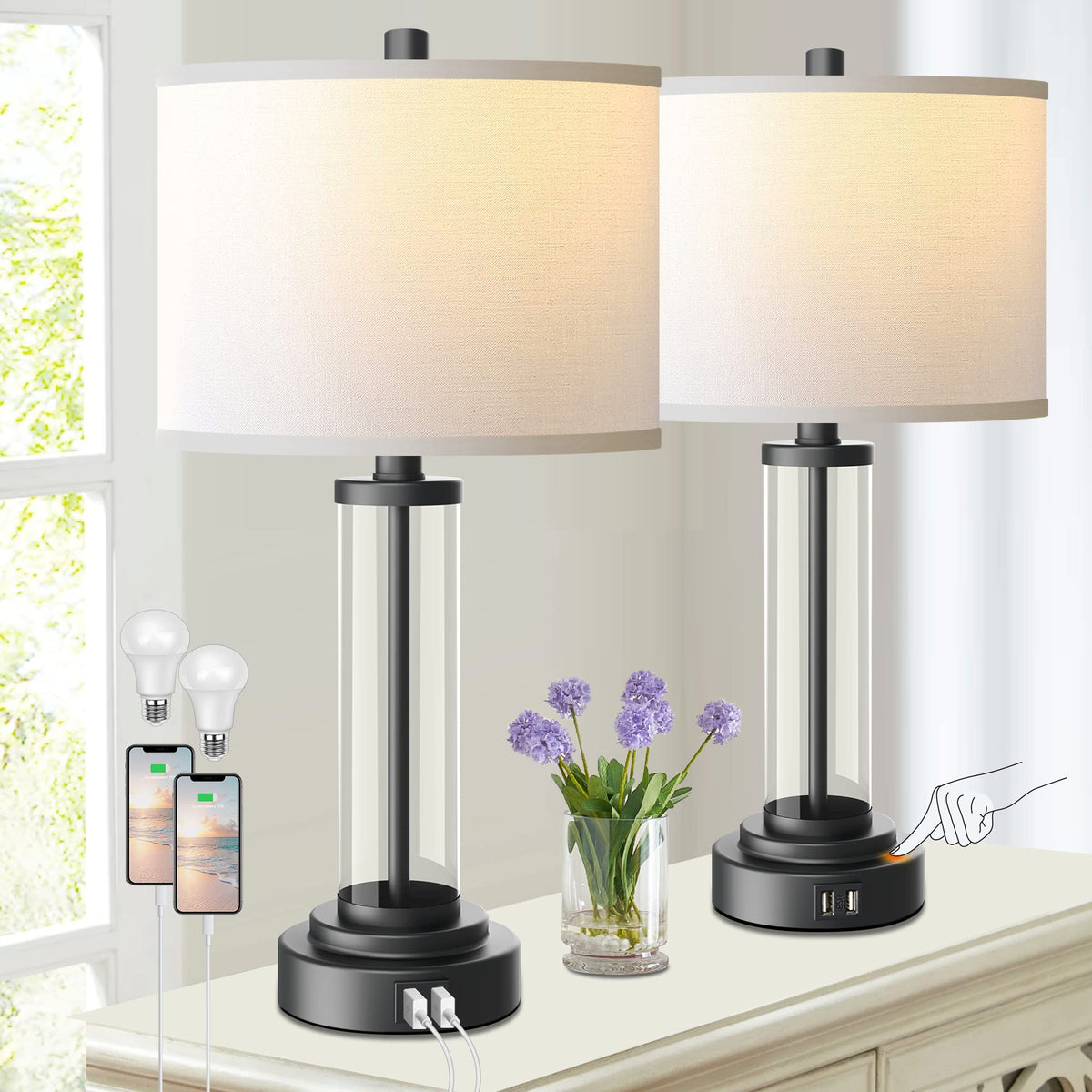 - **Convenient USB Charging Ports**: No more hunting for available outlets. Each lamp is equipped with two built-in USB charging ports, enabling seamless charging for your mobile devices, tablets, and e-readers, even when the lamps are turned off.