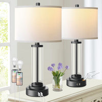 Q: Can I charge my devices using the USB ports on these lamps?A: Absolutely! Each lamp is equipped with two built-in USB charging ports located in the base. This allows you to charge your mobile phone, tablet, or other electronic devices even when the lamp is turned off, providing added convenience in your living space.