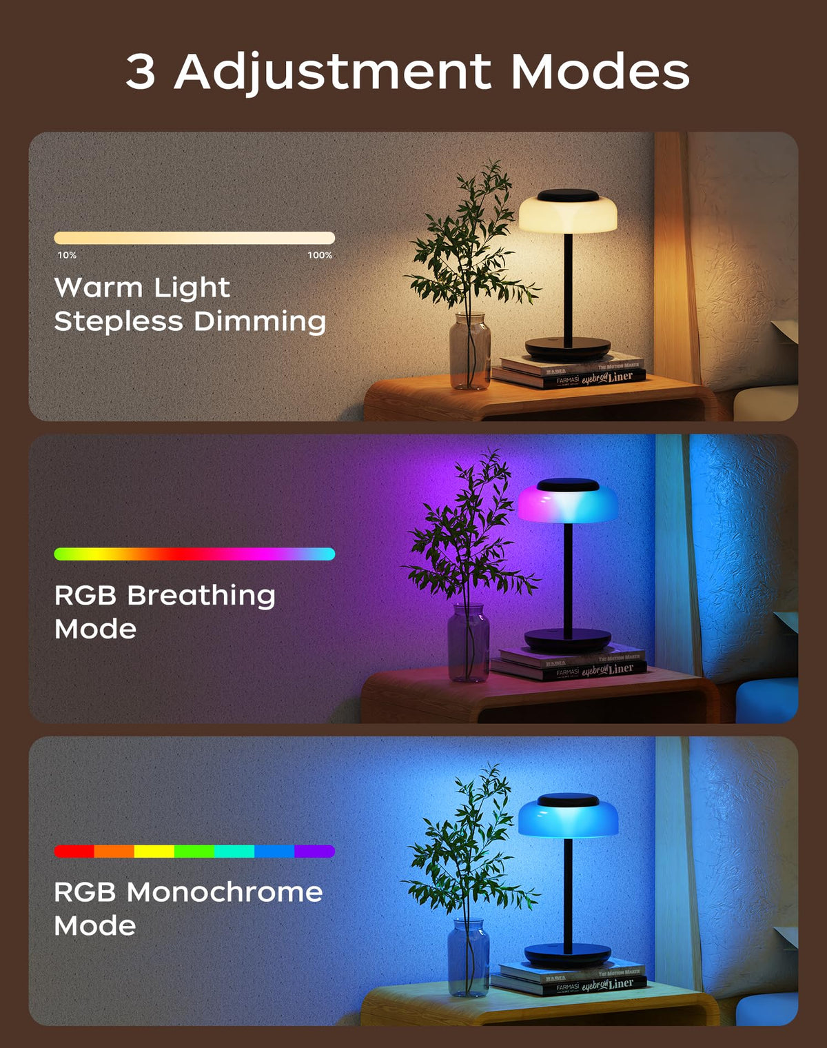 Q: What color options does the lamp offer?A: This lamp features RGB color changing capabilities, allowing you to customize your lighting with warm white lights, dynamic RGB breathing modes, or captivating 7-color ambiance lights.