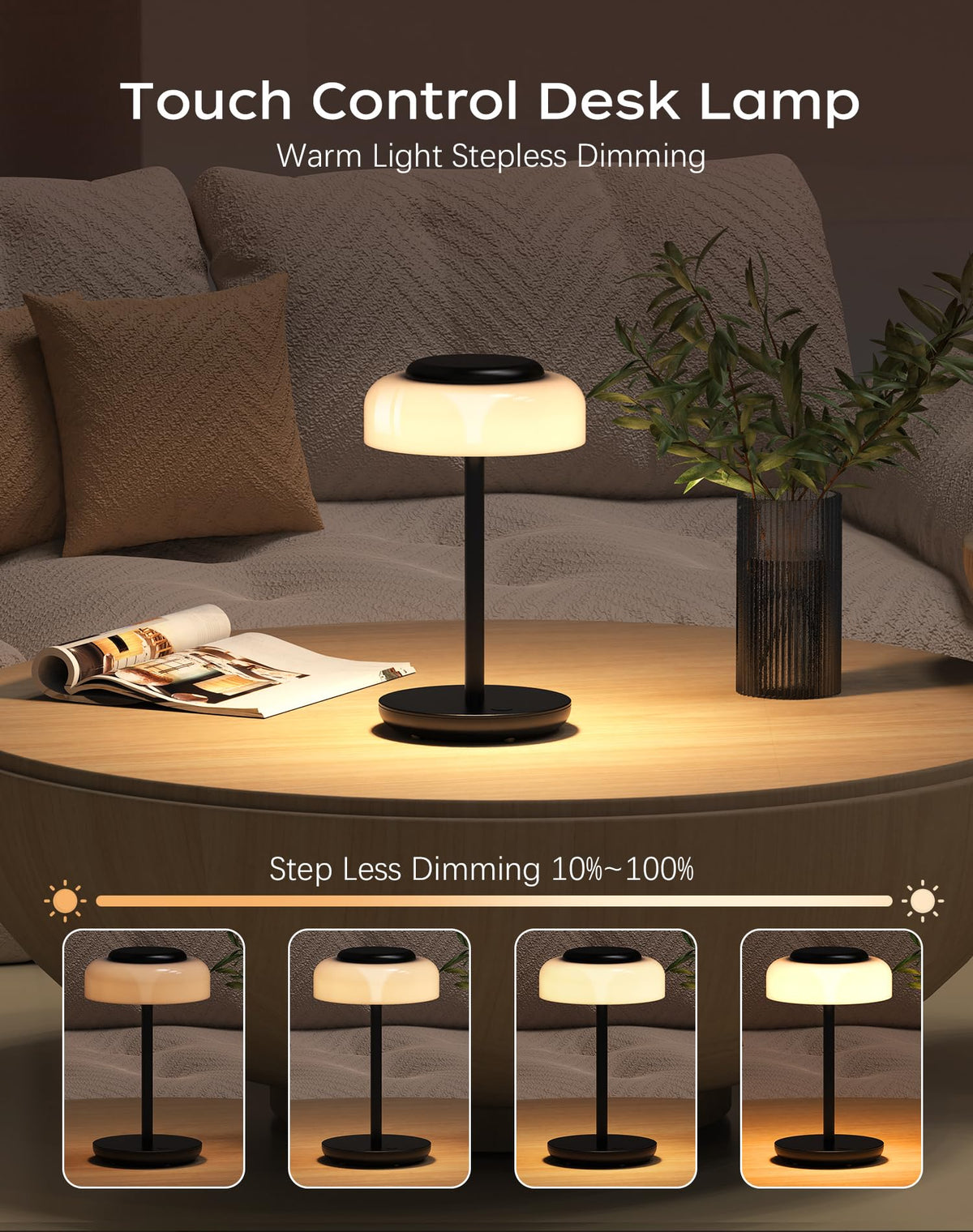Qimh Battery Operated Led Table Lamp, 5000Mah Cordless Desk Lamp With 3 Level Brightness Touch Control, Mini Rechargeable Night