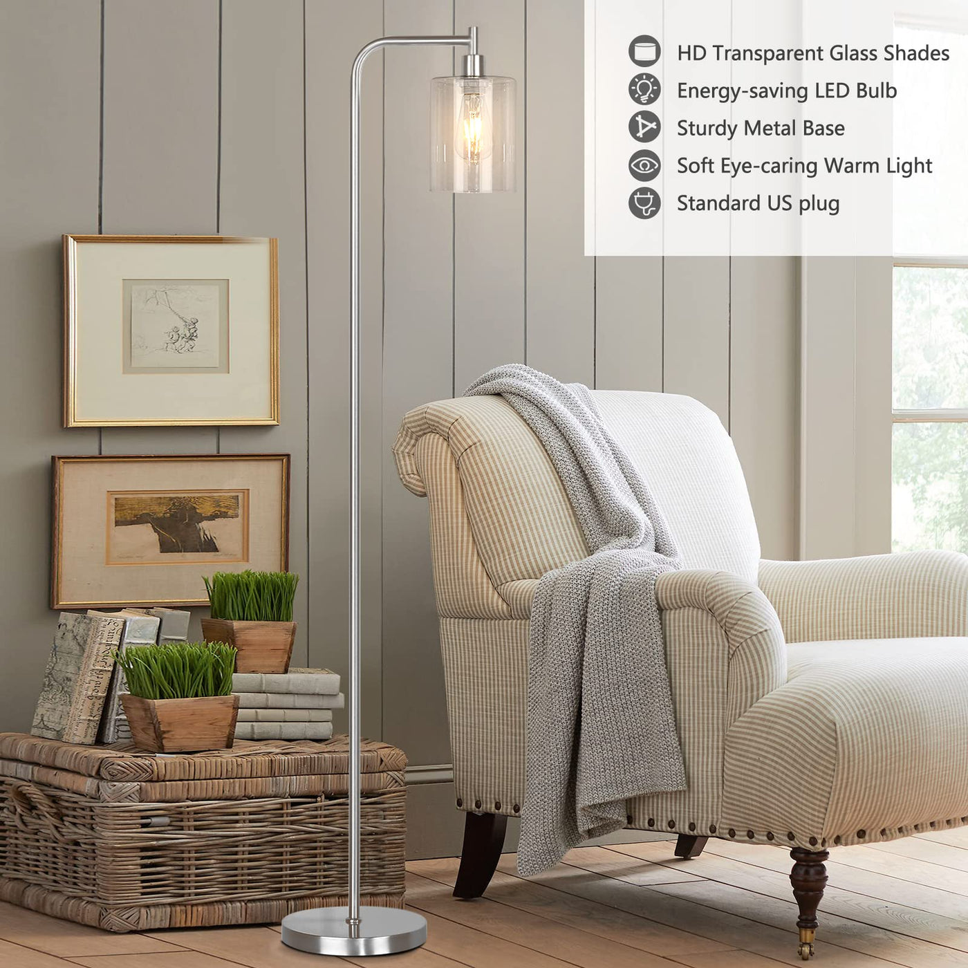 Qimh Industrial Floor Lamp For Living Room, Modern Standing Lamp With Hd Glass Lampshade And Pedal Switch, 67Tall Pole Light For