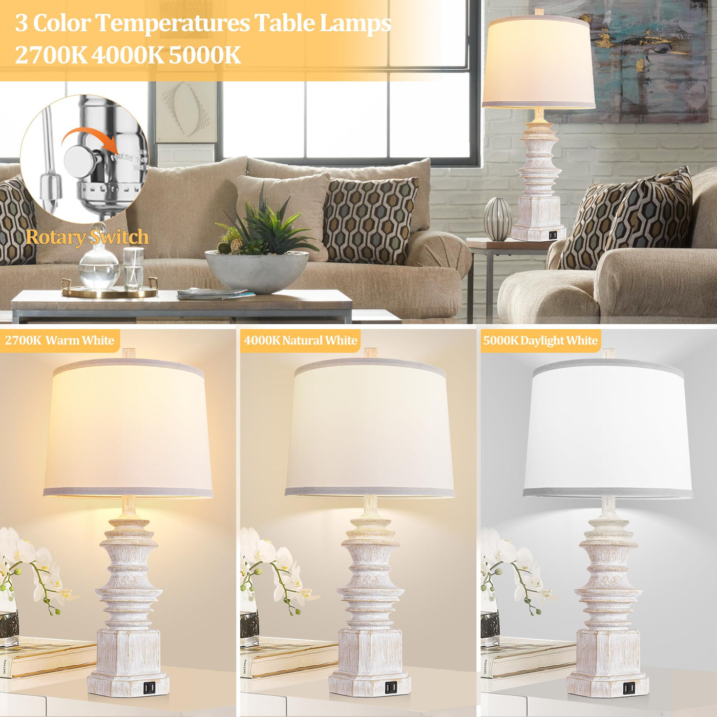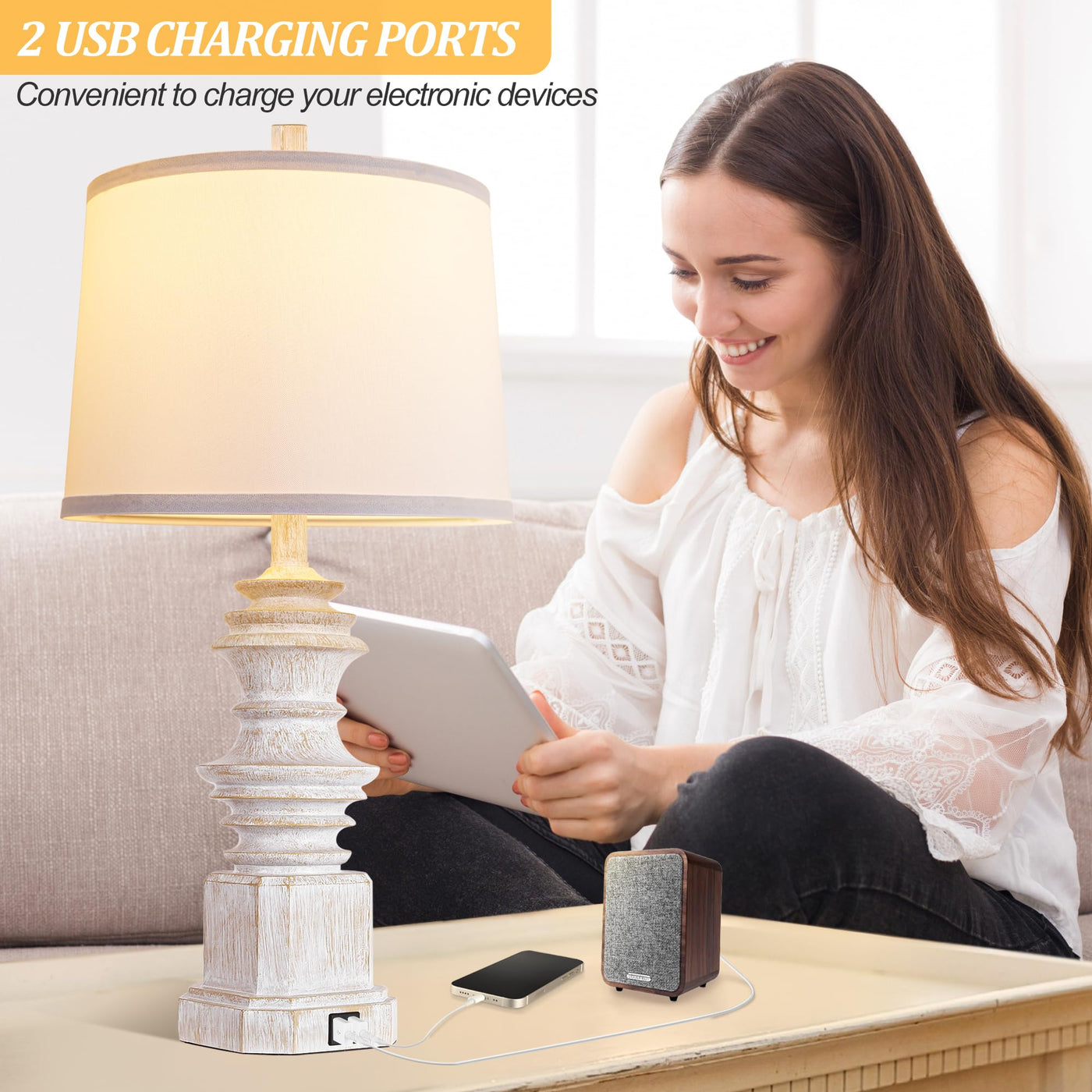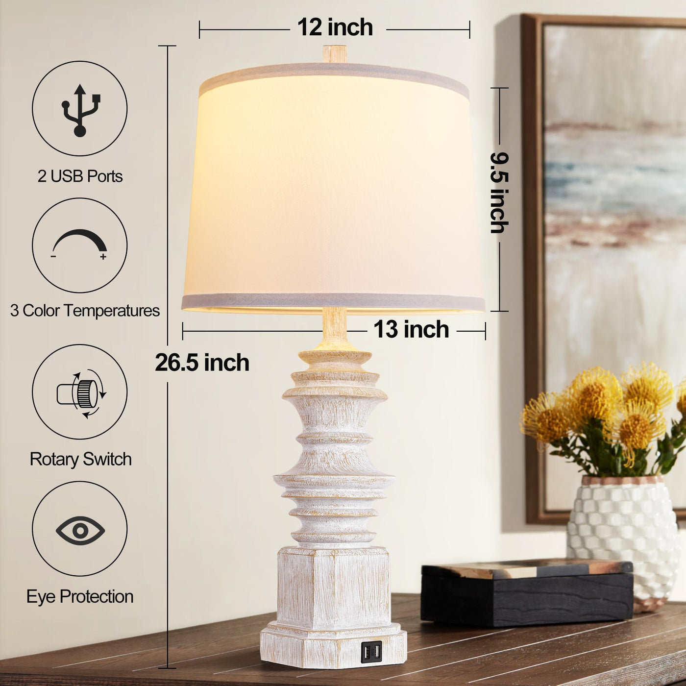 'This Beautiful Table Lamp Features A Retro Farm Style That Will Add A Touch Of Rustic Charm To Any Room. The Lamp'S Vintage-Inspired Design Makes It A Perfect Fit For Farmhouse Or Shabby Chic Decor Styles. One Of The Standout Features Of This Lamp Is Its Rotary Switch, Which Makes It Easy To Turn On And Off. The Lamp Comes With Two Three-Color Temperature Bulbs, Which Allow You To Easily Switch Between Warm White, Cool White, And Daylight Settings. You Can Adjust The Color Temperature To Create The Perfect Ambiance For Reading, Working, Or Relaxing. The Bulbs Are Energy-Efficient And Provide Bright, Long-Lasting Light While Consuming Minimal Power. In Addition To Its Lighting Features, This Table Lamp Also Has Dual Usb Ports, Which Allow You To Charge Your Phone Or Other Electronic Devices While You Work Or Relax. This Feature Makes It Easy To Keep Your Devices Close At Hand And Fully Charged. No Need To Fuss With Multiple Cords And Outlets - Simply Plug In Your Device And Let The Lamp Do The Rest. The Table Lamp Is Designed With Your Eye Health In Mind, Featuring A Built-In Led Light Diffuser That Provides Even, Flicker-Free Lighting. This Helps To Reduce Eye Strain And Fatigue, Making It Easier To Work Or Read For Longer Periods. The Diffuser Also Helps To Prevent Glare And Shadows, Which Can Be A Common Problem With Some Types Of Lighting. Assembly Of The Lamp Is Quick And Easy, So You Can Start Enjoying Its Benefits Right Away. The Lamp Is Designed To Be User-Friendly And Intuitive, So You Can Assemble It In Just A Few Minutes Without Any Special Tools Or Expertise. Overall, This Decorative Table Lamp Is A Great Choice For Anyone Who Wants To Add A Touch Of Retro Charm To Their Home Or Office. With Its Rotary Switch, Three-Color Temperature Bulbs, Dual Usb Charging, Eye Protection, And Easy Assembly, It'S A Versatile And Practical Choice That Will Provide You With Years Of Reliable Service. ''