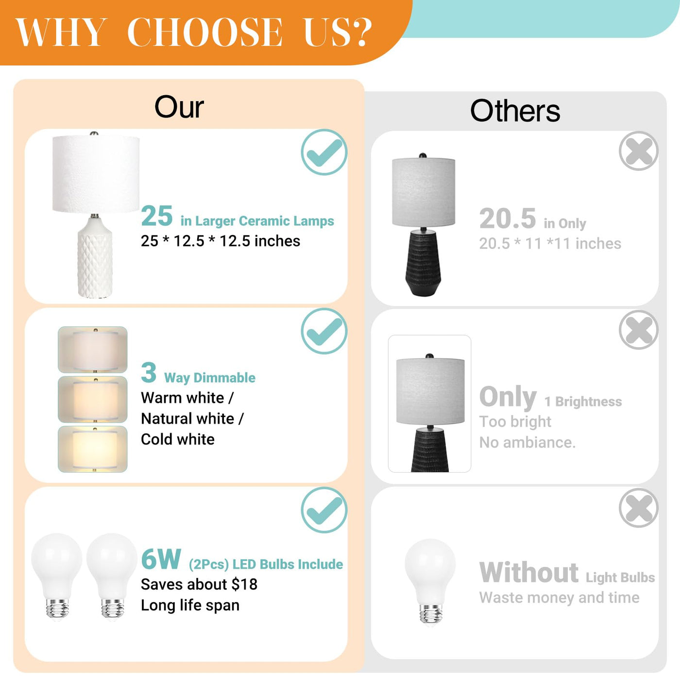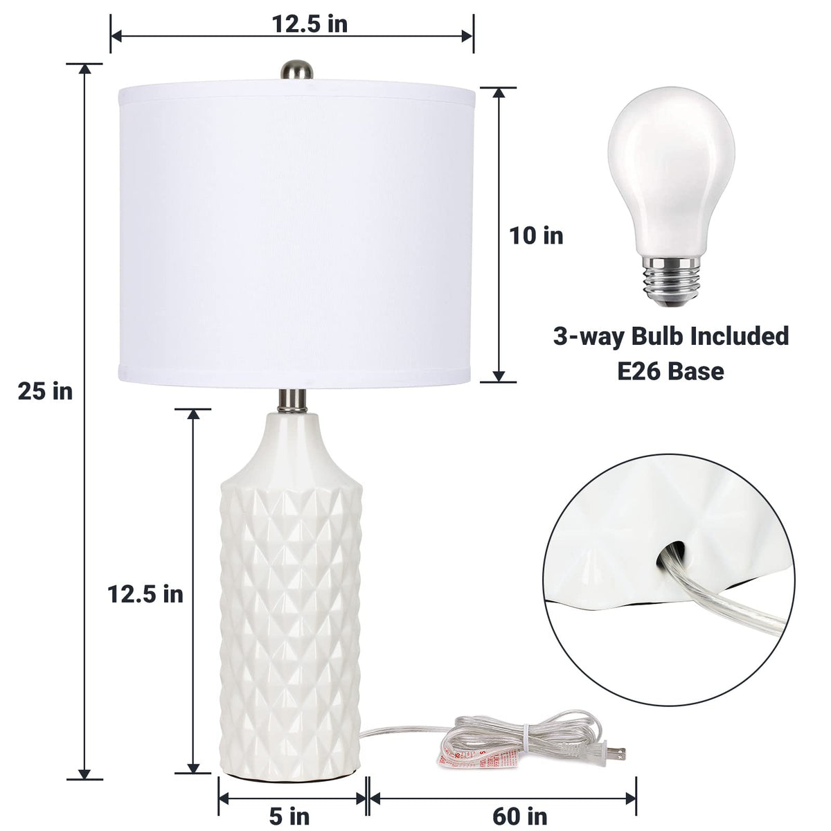 - **Convenient Size**: Standing at 25 inches tall, with a ceramic base measuring 12.5" H x 5" W and a shade diameter of 12.5" and height of 10", these lamps are the ideal size for bedside tables, nightstands, or side tables, ensuring stability with a felt piece underneath.