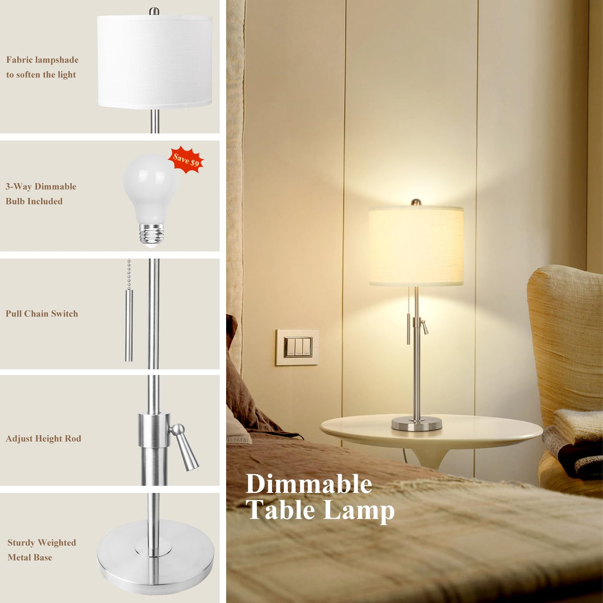 Qingmiao Brushed Nickel Table Lamps Set Of 2, 22-30" Height Adjustable With Linen Shade
