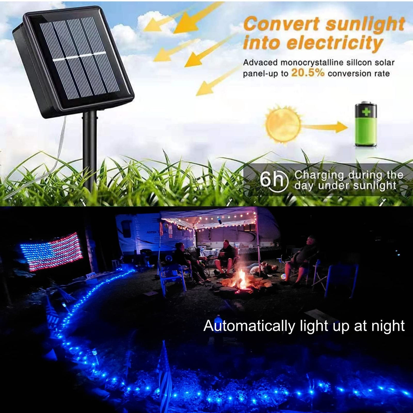 - **Complete Package**: Each set includes 2 strands of 100 LED blue solar rope lights, along with 2 stakes and 2 stands. Enjoy quick and friendly customer service to assist with any inquiries.