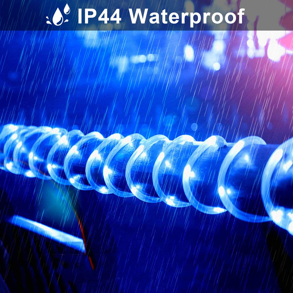 Q: Are these solar string lights waterproof?A: Yes, the QITONG Blue Solar Rope Lights are IP44 waterproof, making them suitable for outdoor use even in adverse weather conditions like rain and wind.