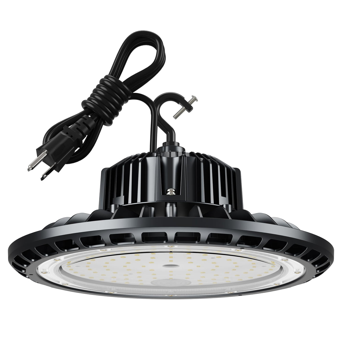 1.This Led High Bay Light 150W High Quality And Powerful High Bay Led Lights Gives Off Industry-Leading Illumination! Its Commercial Grade Compatibility And 21,000 Lumens Easily Make This Ufo Led High Bay Light The Best Choice When It Comes To Wide And Clear Illumination! With Up To 140 Lumens Per Watt, This Is Easily One Of The Highest Performing Lights In The Industry. On Top Of All This, This High Bay Led Light Is Compatible With Reflector (Need Order Separately) To Provide Up To 20% Uplight! 2.The Effortless 3-Minute Installation Process Will Save You The Headaches And Frustration That Other Light Installations Cause. This Package Comes With A Free American Hook, 5 Feet Power Cord, And Safety Rope To Make Installing This Led High Bay Lights That Much Easier! It Also Features A 110V Standard American Plug For Easy And Direct Power Sourcing. This Will Save You Time And Energy To Work On Other Projects! 3. Its Commercial Grade, Durable Properties Make It The Toughest And Most Versatile Light On The Market. Never Worry About This High Bay Light Being Damaged From Outdoor Weather Conditions! The Pure Aluminum Cold Forged Housing Provides Excellent Thermal Transfer To Extend Component Life And Keep It From Becoming Damaged. Its Operation Temperature Is -104 To 122F. 4.The High Bay Led Lights Weight, Low Profile And Circular/Ufo-Like Design Makes This High Bay Lights The Most Unique And Beautiful Product On The Market. On Top Of All These Ufo Lamps Beautiful Characteristics, It Is Also Dimmable! This Professional, Stylish, And Unique Look Offers Its Customers A Supreme Lighting Experience.