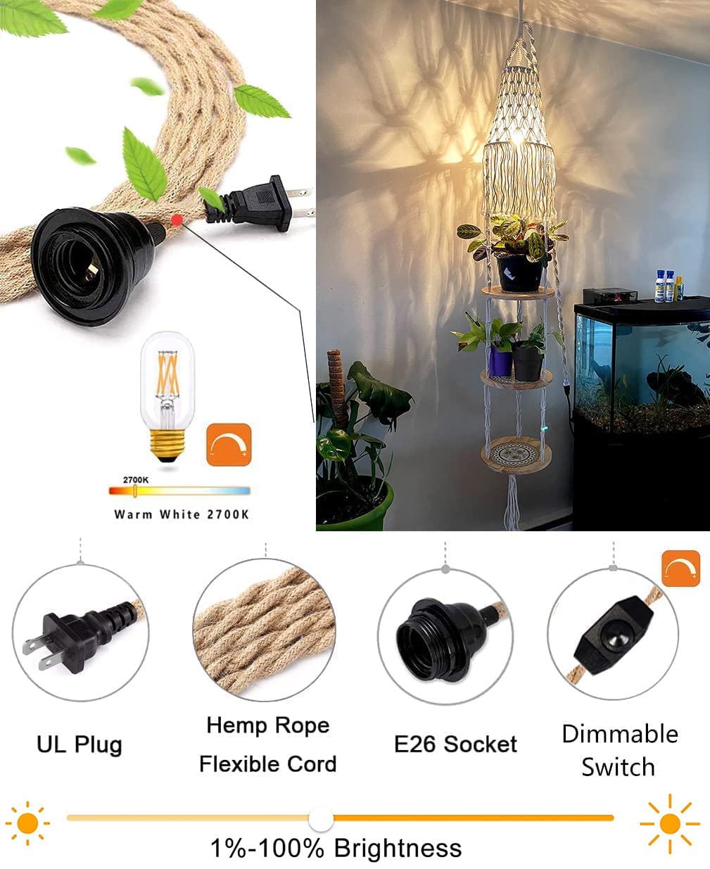 - **4-in-1 Multi-Functionality**: Experience the perfect fusion of style and practicality with this handmade macrame lamp shade, a three-tier plant shelf, a 14.7FT plug-in hemp rope cord, and a dimmable LED bulb included. This all-in-one design ensures you have everything you need for a beautiful setup.