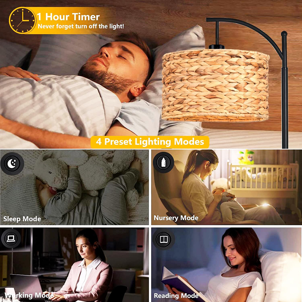 Q: What materials are used in the QIYIZM Floor Lamp's design?A: The lamp features a beautiful brown wicker and bamboo lamp shade, which not only enhances its aesthetic appeal but also contributes to a warm and inviting atmosphere in your space.