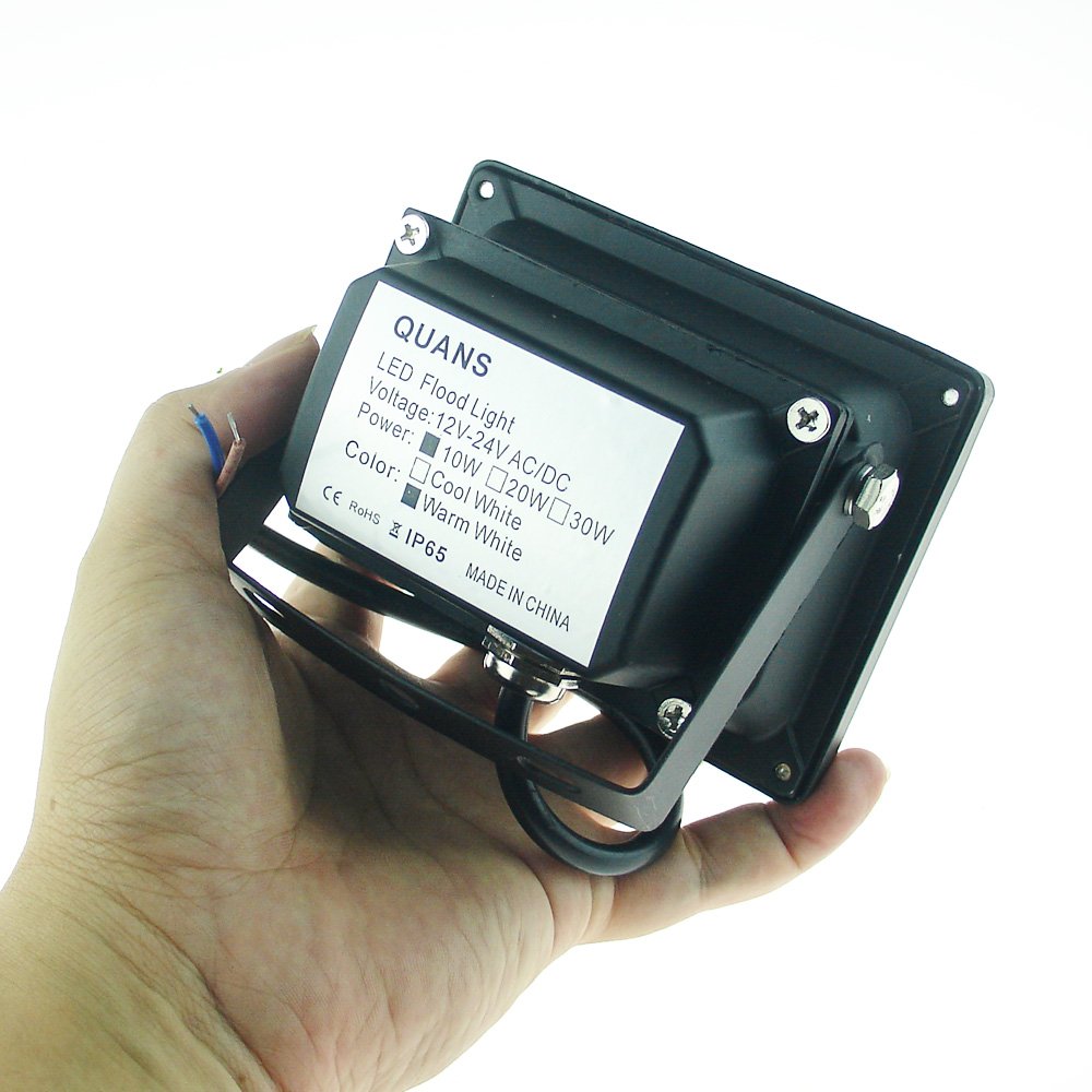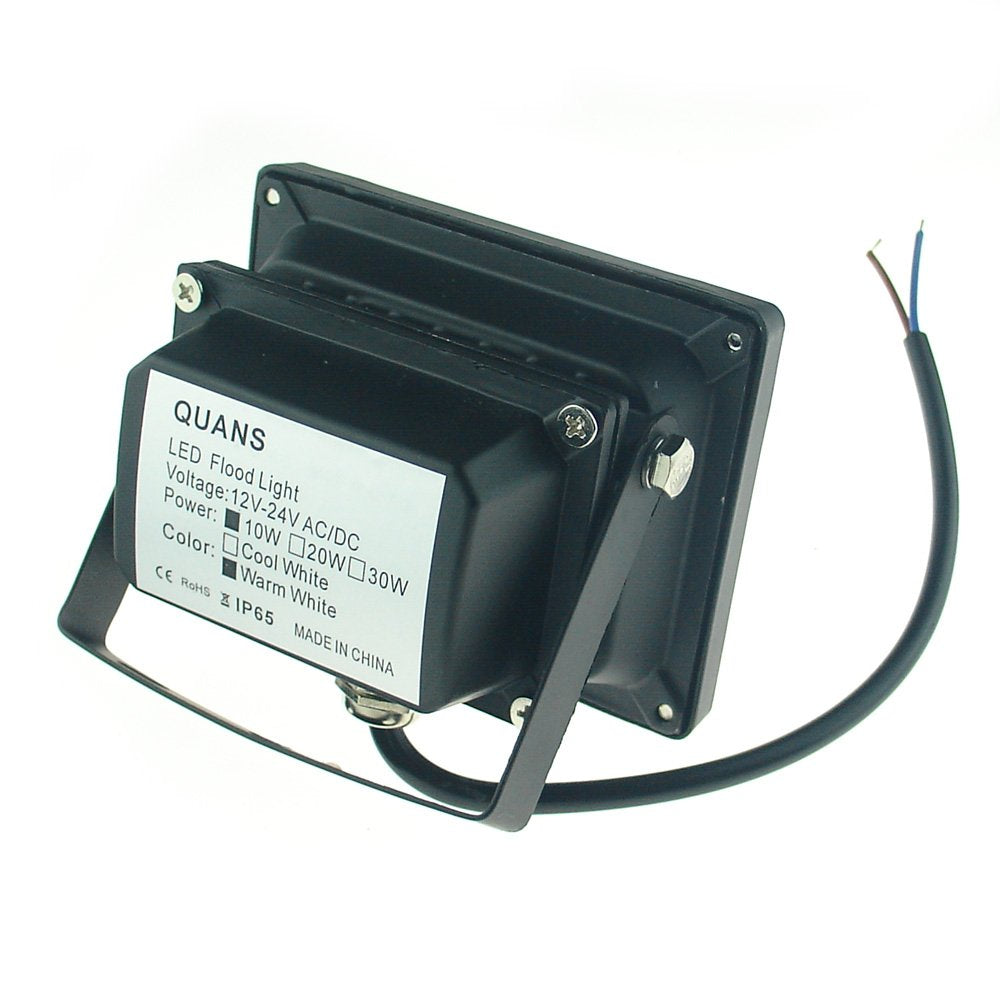 Q: What is the power input range for the QUANS 10W LED Flood Light?A: The QUANS 10W LED Flood Light operates on an input voltage range of 12-24VAC or DC, making it versatile for various applications.