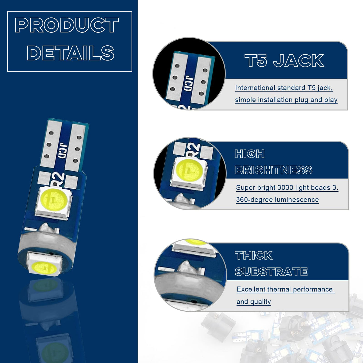 Quicto Led Bulb Dash Lights Super Bright, T5 37 74 Led Bulb With Twist Lock Socket Pc74 Pc37, For Car Bulb Air Conditioning Light Clock Light (White)