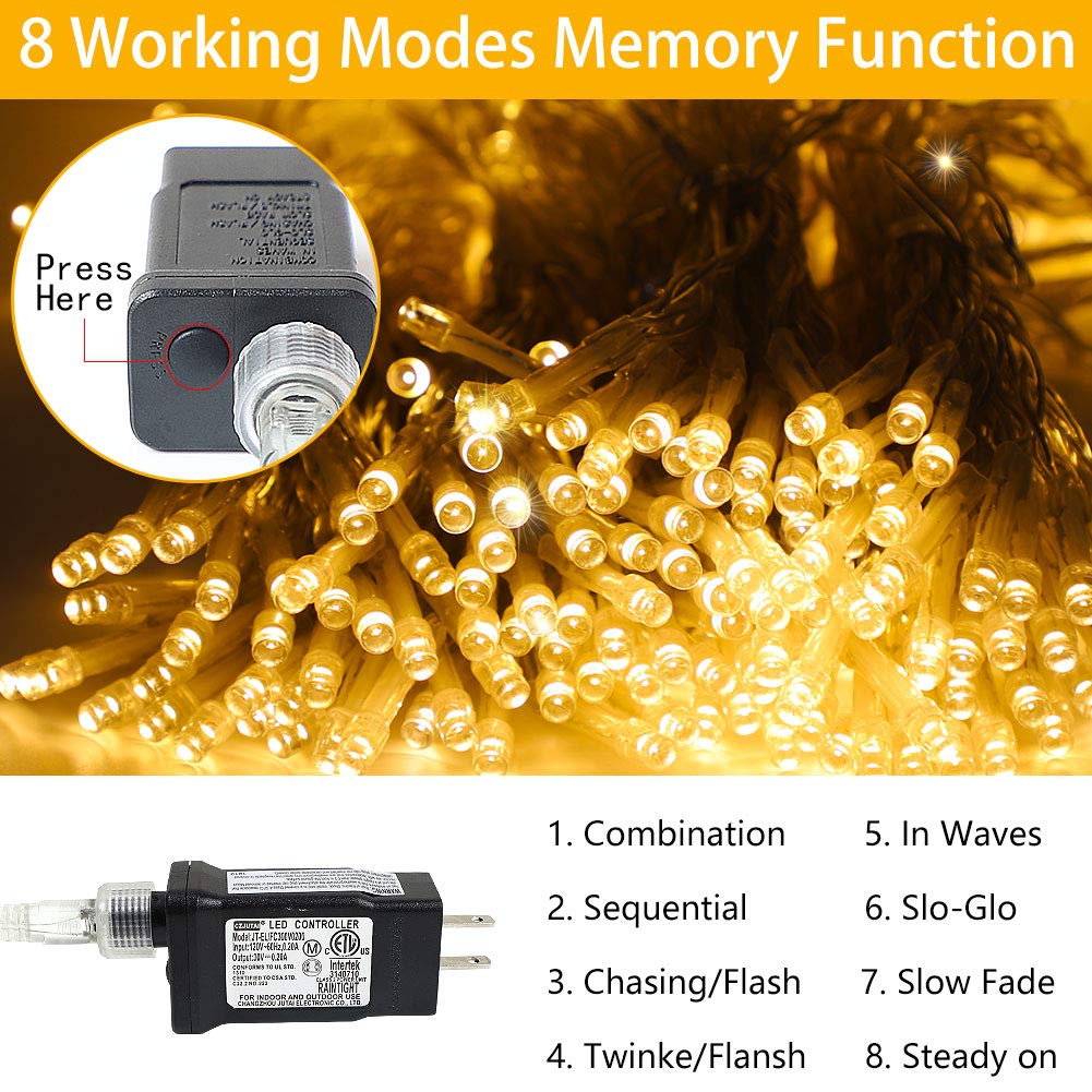 - **8 Lighting Modes**: Choose from a variety of settings including flashing, twinkling, waves, sequential, slow glow, chasing, slow fade, and steady on. Effortlessly switch modes to create the perfect ambiance for any occasion.