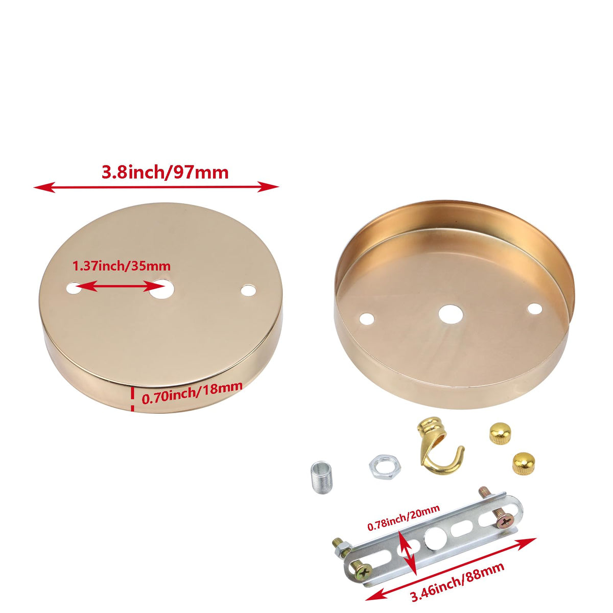 Product specifications Product width: 3.8inch/97mm; Thickness: 0.70inch/18mm Color: Rose Gold 3pcs x mental light canopy kit