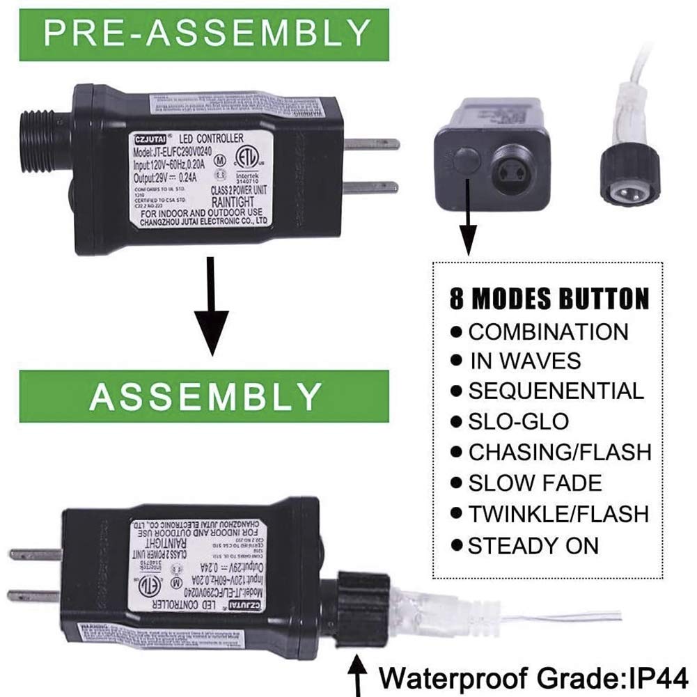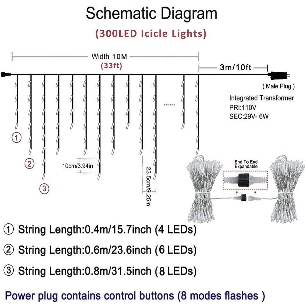 Q: What are the different lighting modes available for the Qunlight 300L LED Icicle Lights?A: The Qunlight 300L LED Icicle Lights feature 8 different lighting modes that can be easily controlled with a user-friendly controller. These modes allow you to select your preferred lighting effect for any occasion.