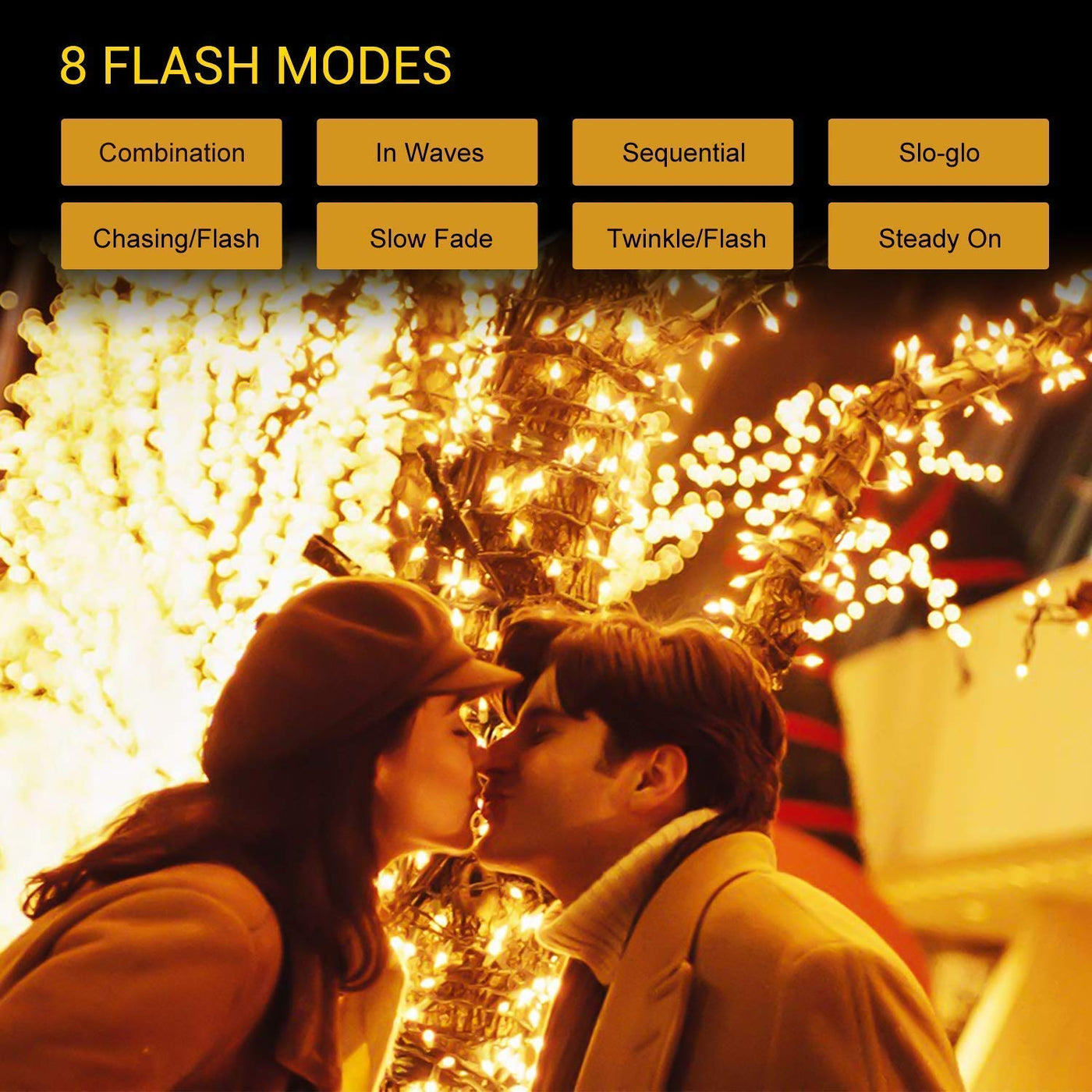 Q: How do I control the light modes on these LED string lights?A: The Quntis Christmas lights come with a controller located on the plug. You can easily switch between 8 different light patterns, including combination, waves, and steady on, by pressing the button on the plug.