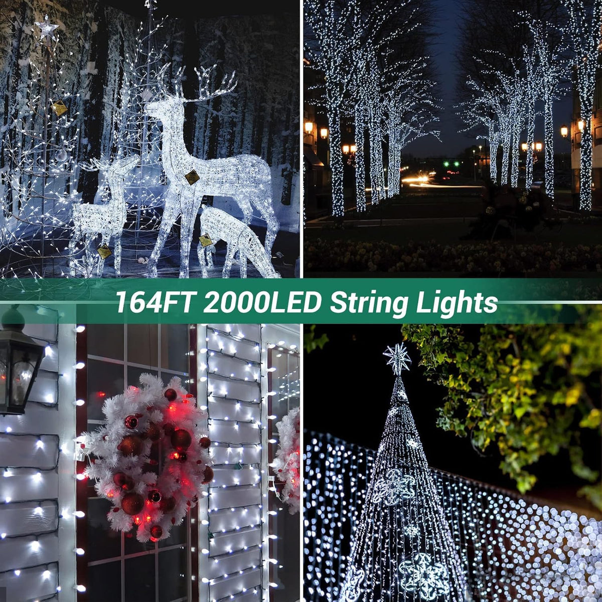 Quntis 164ft 2000 LED Cluster Christmas String Lights - 8 Modes Christmas Tree Lights - Outdoor Waterproof Dark Green Wire Christmas Lights Plug in for Holiday Wedding Party Home Decor, White