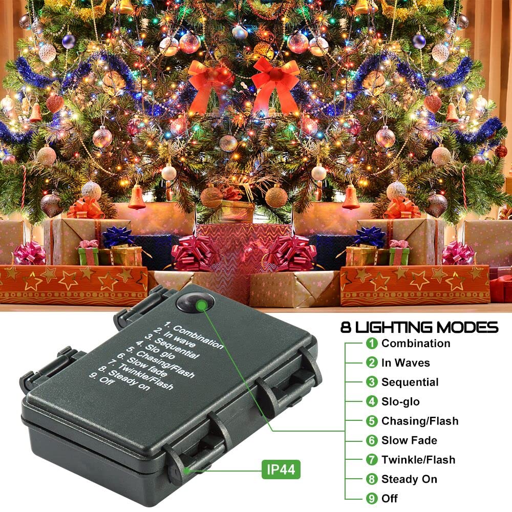 Quntis Battery Operated Christmas Lights -132Ft 300Leds Battery String Lights Outdoor Indoor 8 Mode Led Christmas Tree Lights With Timer Decoration For Xmas Tree Garden Wedding Party - Multicolor