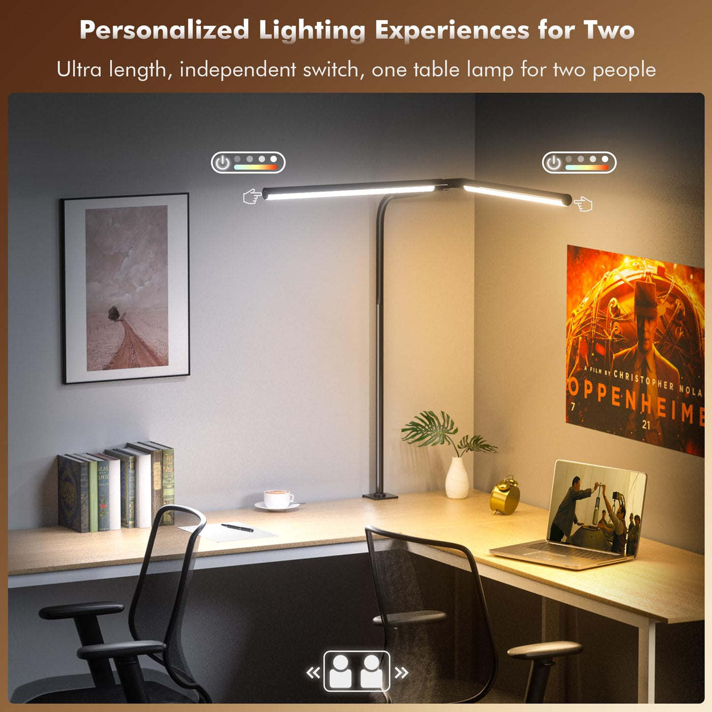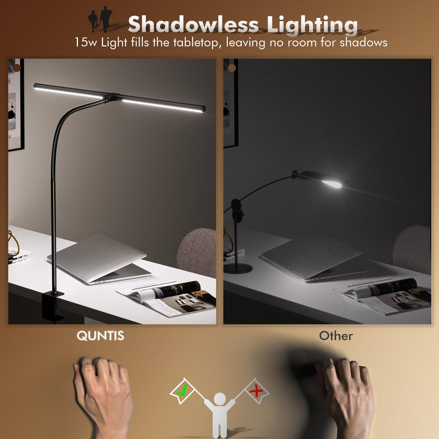Quntis Double Head LED Tall Desk Lamp for Home Office, 31.5-inch Foldable Computer Desk Light with Clamp, Dimmable Dual Monitor