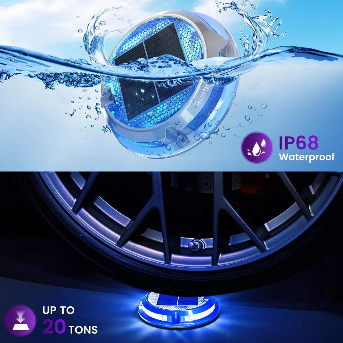 Q: Are Quntis RGB solar deck lights waterproof?A: Yes, the Quntis RGB solar deck lights have an IP68 waterproof rating, ensuring they can withstand harsh weather conditions, including heavy rain and high temperatures.