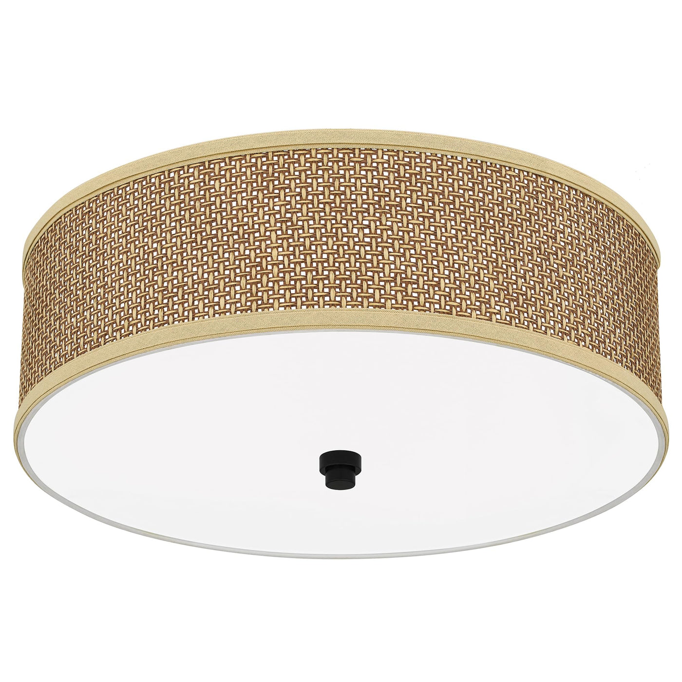 Crafted from durable materials, the Zen Flush Mount features an oatmeal rattan shade that showcases natural variations, bringing an exotic feel to your home. The tightly woven tan rattan, complemented by coordinating trim, gives this light a chic, bohemian appeal. Its classic silhouette makes it a versatile addition to any decor style, from modern to traditional. Built with sturdy alloy steel, this close-to-ceiling light is designed for longevity and offers a polished look that elevates your interior design.