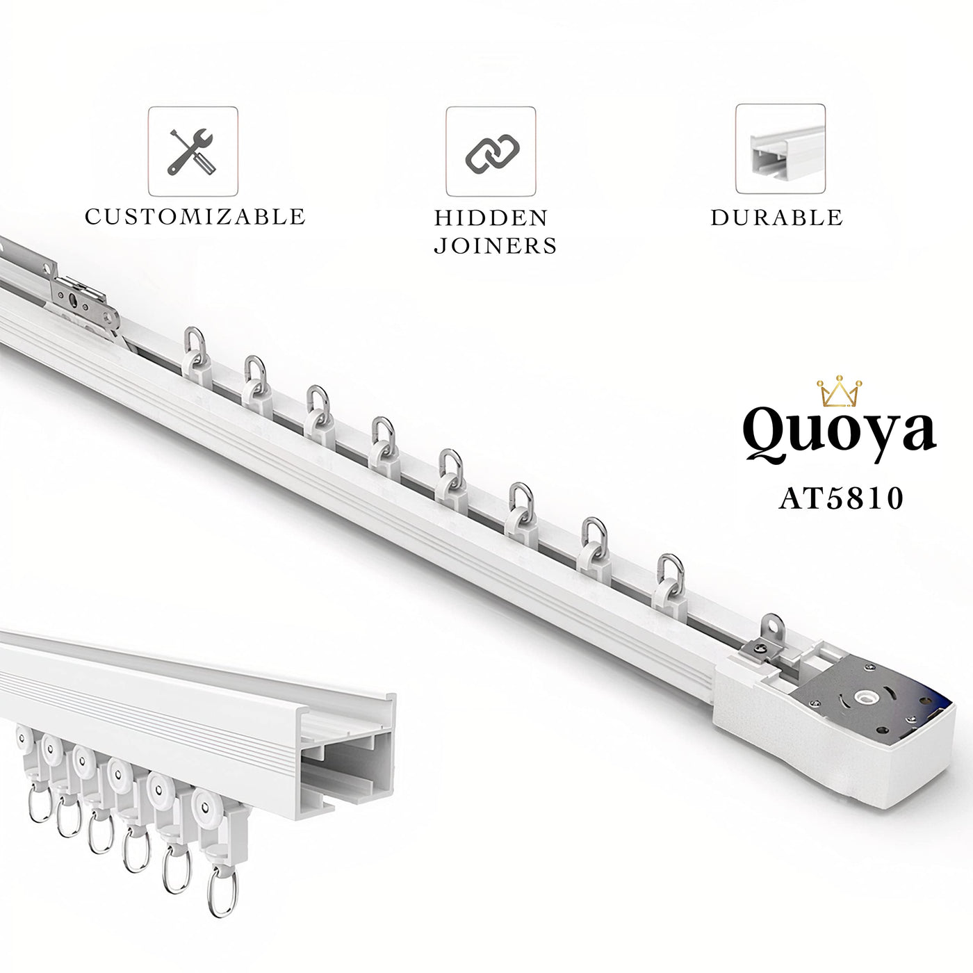 Quoya Smart Electric Curtain Track AT5810?Up to 3m(118in) - Motorised and Adjustable ?, with Automated Rail Motor with App, Voic
