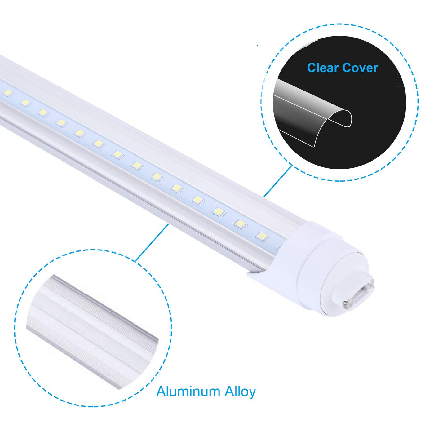 R17D/Ho 8Ft Led Shop Bulb, Rotating Base Led Tube Light, 6000K Clear Lens, Dual-Ended Power Bulb Lights, Non-Dimmable, 2 Pin, Ba