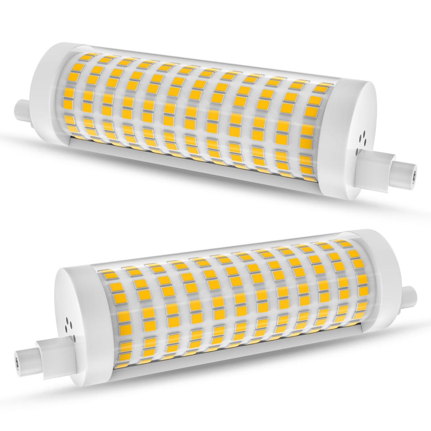 Specifications: Power: 20W Luminous Flux: 2000 lumen Beam Angle: 270 Light Temperature: Natural White 4000K Color Rendering Index (CRI): 85 Voltage: AC 110V120V 130V Dimmable: Yes Material: PC and Ceramic Diameter: Width:1.18 (30mm), Length: 4.64 (118mm) Package Includes: 2 packs R7S LED light bulbsPlease Note: Please make sure the double ended light bulb base matches what your light fixture has. Please verify your light bulb length is 118mm (4.64''), as there is a shorter version with 118mm (4.64'') length that looks similar in the photos. Please verify these specs prior to order.