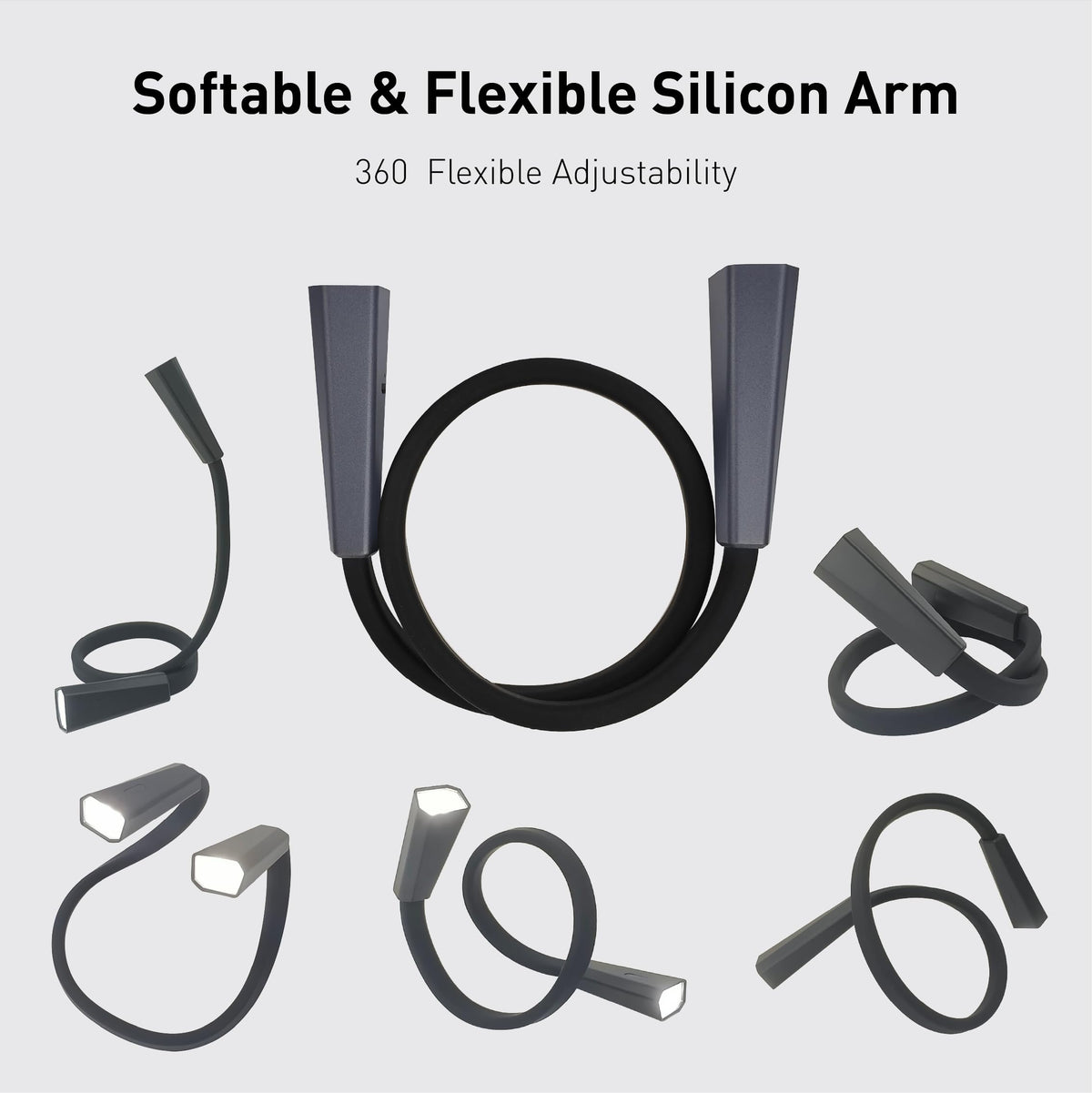 Radixium Silver Led Neck Rechargeable Reading Light, Multifuntion Book Light For Reading In Bed And Camping, 4 Brightness Levels