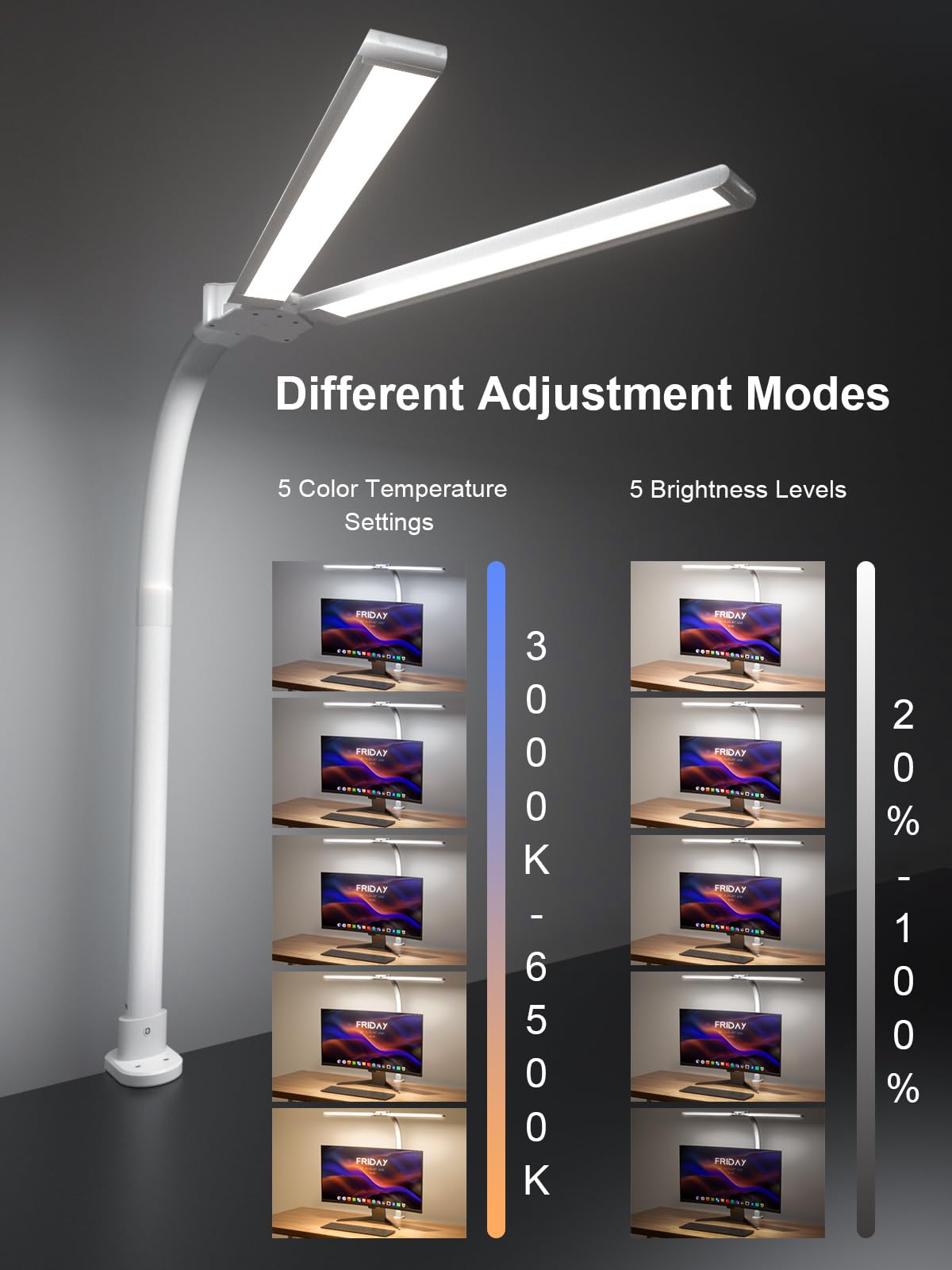 Radlfut Double Swing Arm Desk Lamp - White Architect Lamp With Clamp For Home Office, Crafting - 24W Bright Rotatable Tempering