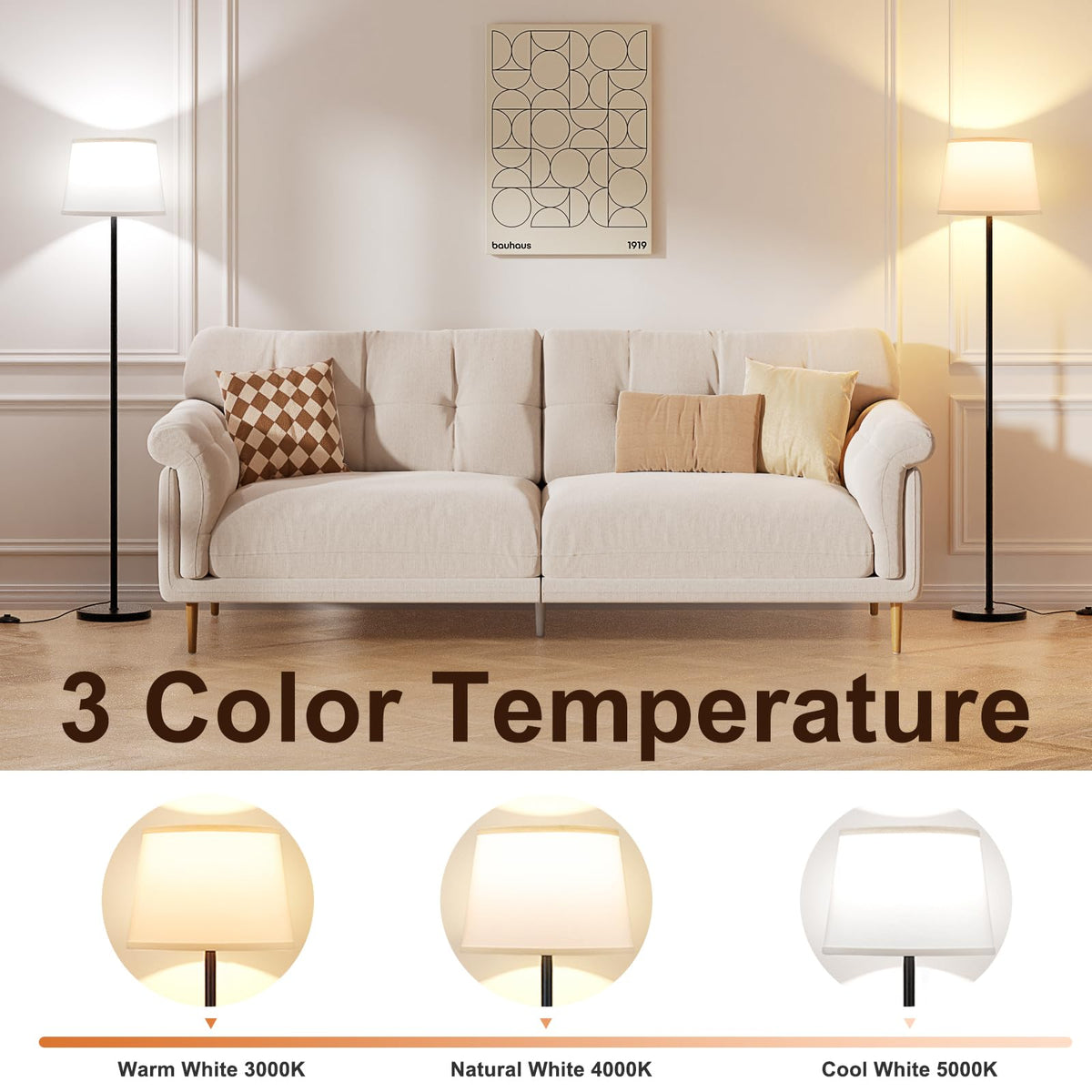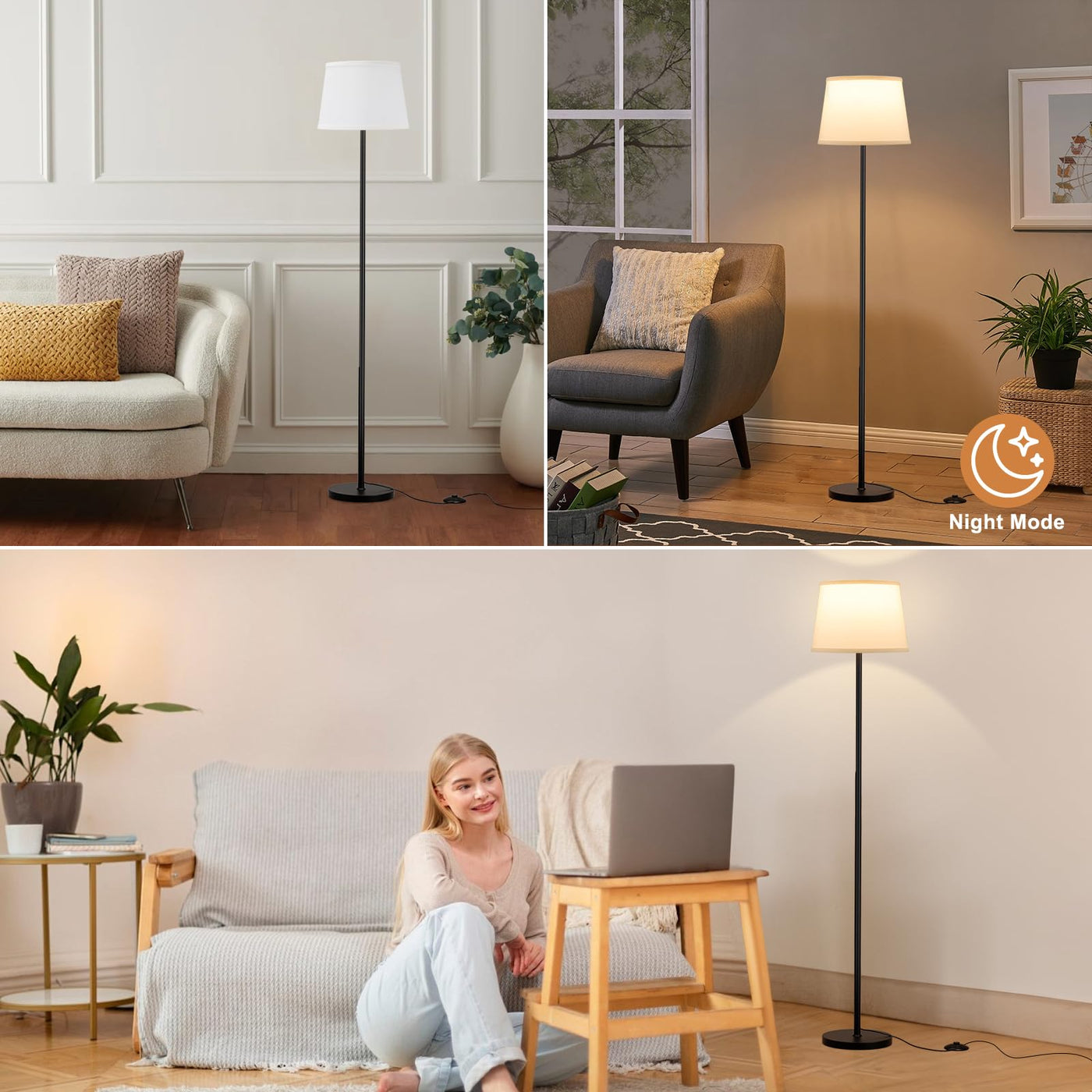 Raexpectis Floor Lamps For Living Room - 3 Color Temperatures Standing Lamp With White Shade, Modern Floor Lamp With Led Bulbs,