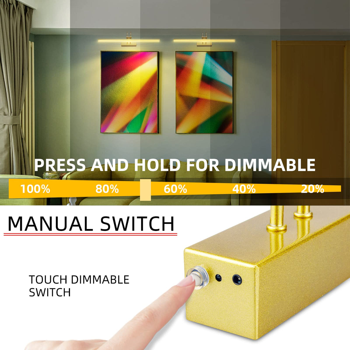 Raifoolly Picture Light,13In Battery Operated Art Lights For Paintings,Remote Display Accent Light With Timer And Dimmable For Wall,Frame, Portrait, Dartboard-Gold