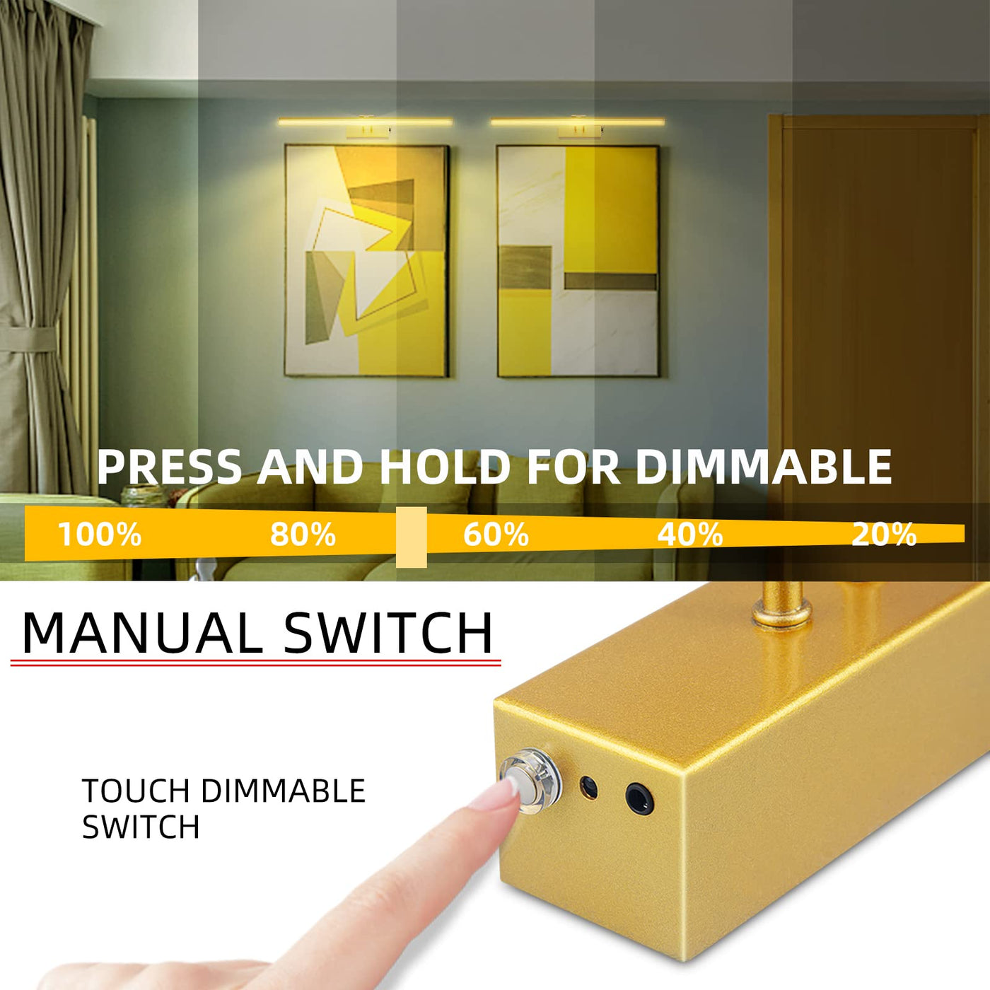 MORE DETAILS * Material: Metal and Aluminum * Power Source: 5000mAh rechargeable battery * 48pcs super bright LED. 1.1W, 280Lumens * Each light tube can be turned 150 up or down, rotate each light head independently to desired angle. PACKING LIST - 1 x Picture Light - 1 x Remote Control - 2 x Screw - 1 x User Manual