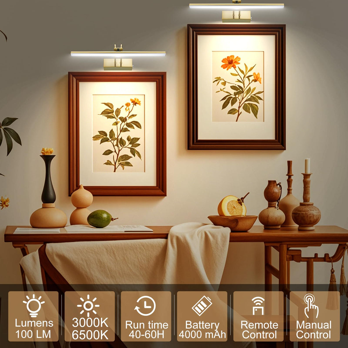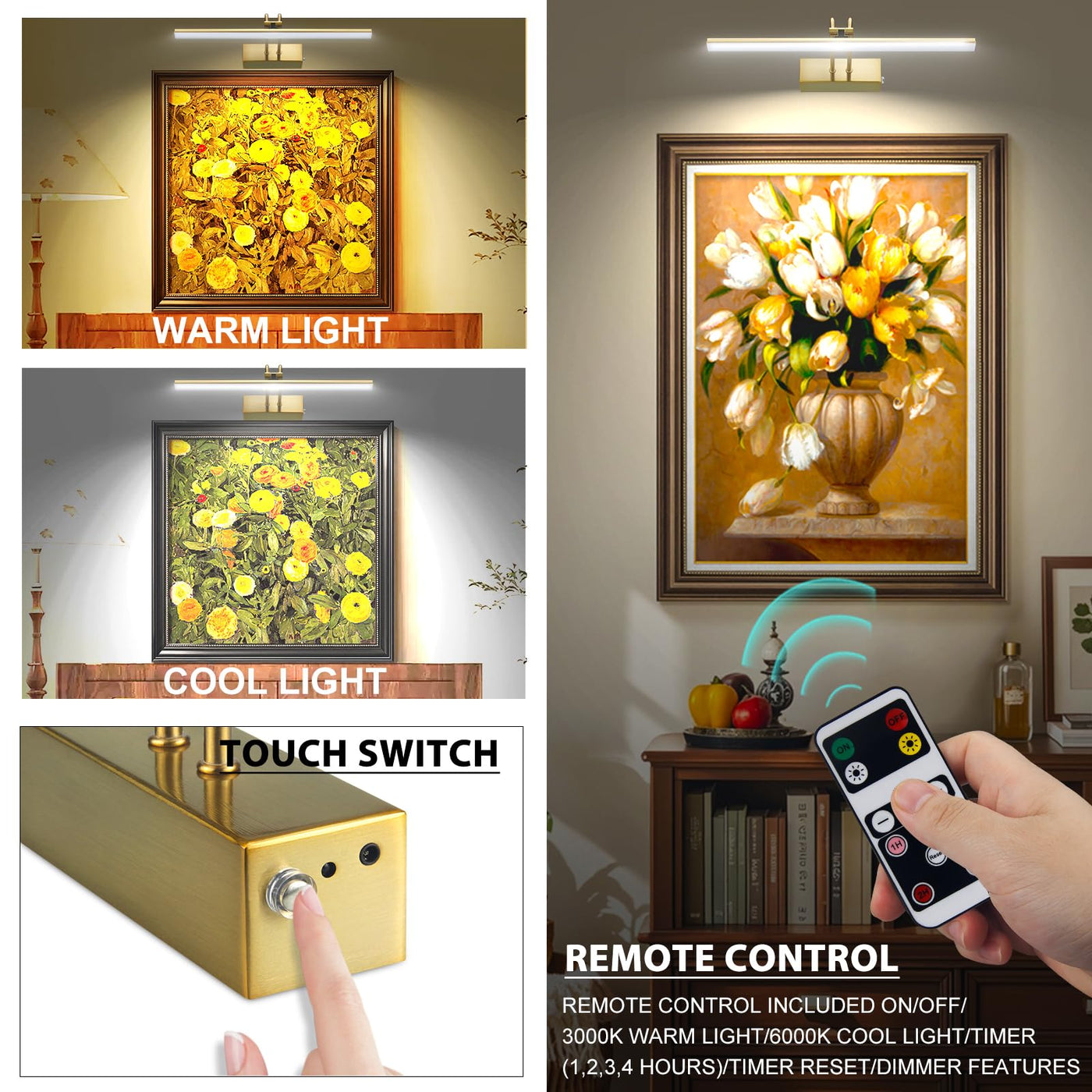RAIFOOLLY Picture Lights for Wall,Battery Painting Light with Remote Dimmable and Timer, 2 Lighting Modes Art Display Light, Wal