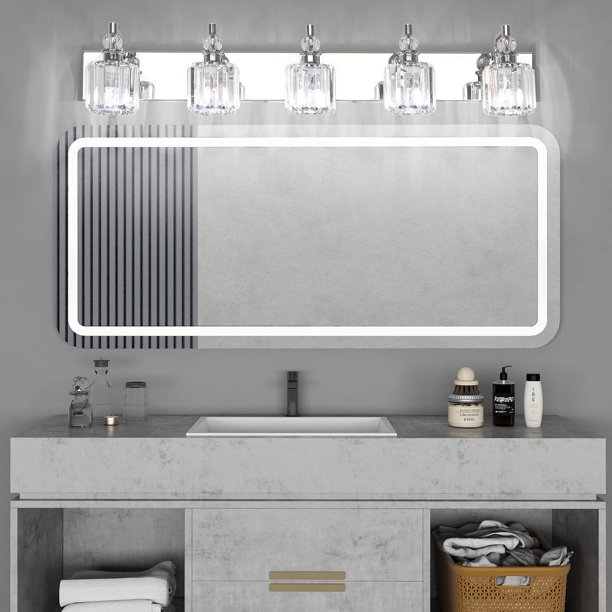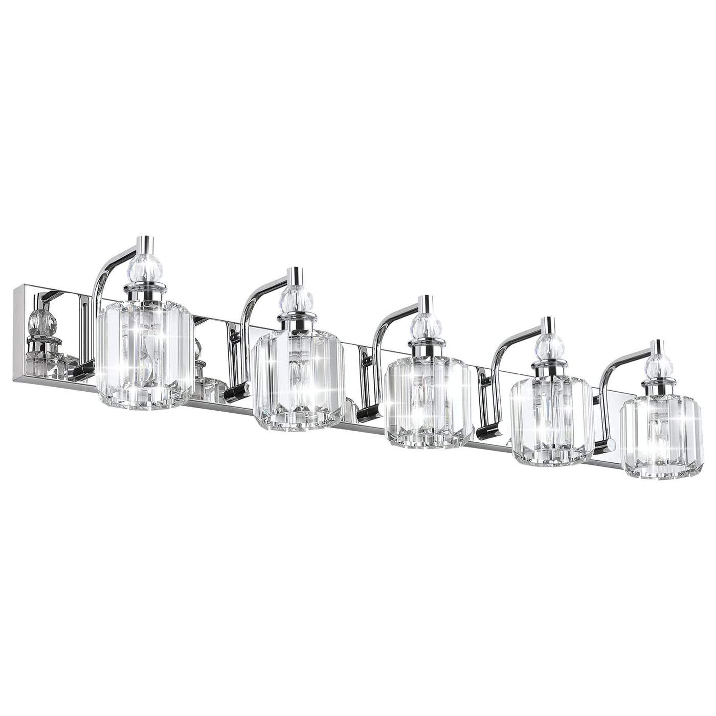 Ralbay 40" Modern Crystal Vanity Light 5 Bulbs Chrome Bathroom Fixture Over Mirror