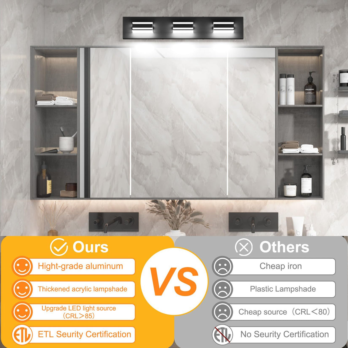 Ralbay Led Modern Bathroom Vanity Lights Black 3-Light 24Inch Matte Black Modern Acrylic Bathroom Wall Lighting Fixtures Over Mi