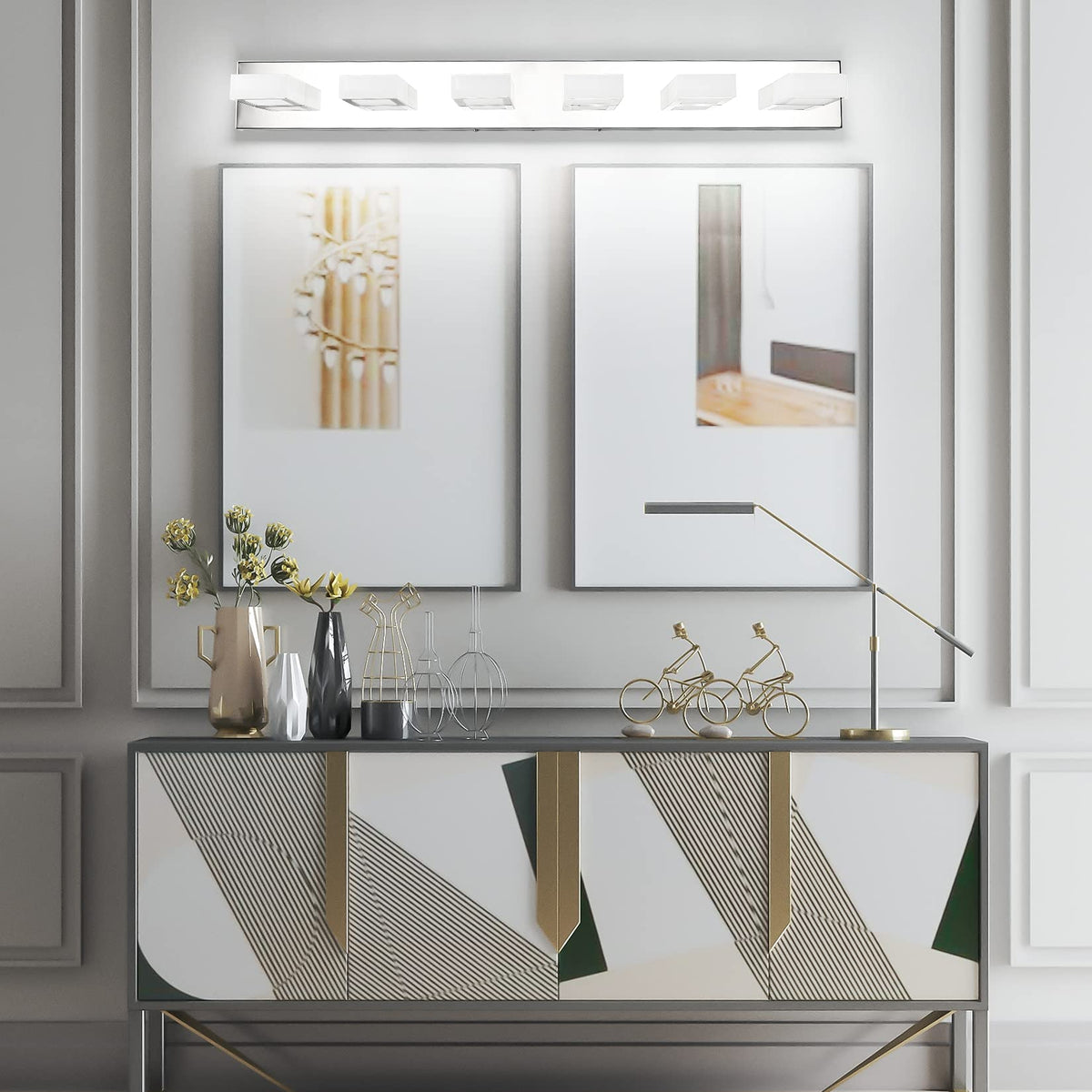 Ralbay Led Modern Chrome Vanity Lights 6 Lights Stainless Steel Acrylic Modern Led Bathroom Vanity Lights Over Mirror (4500K Neu