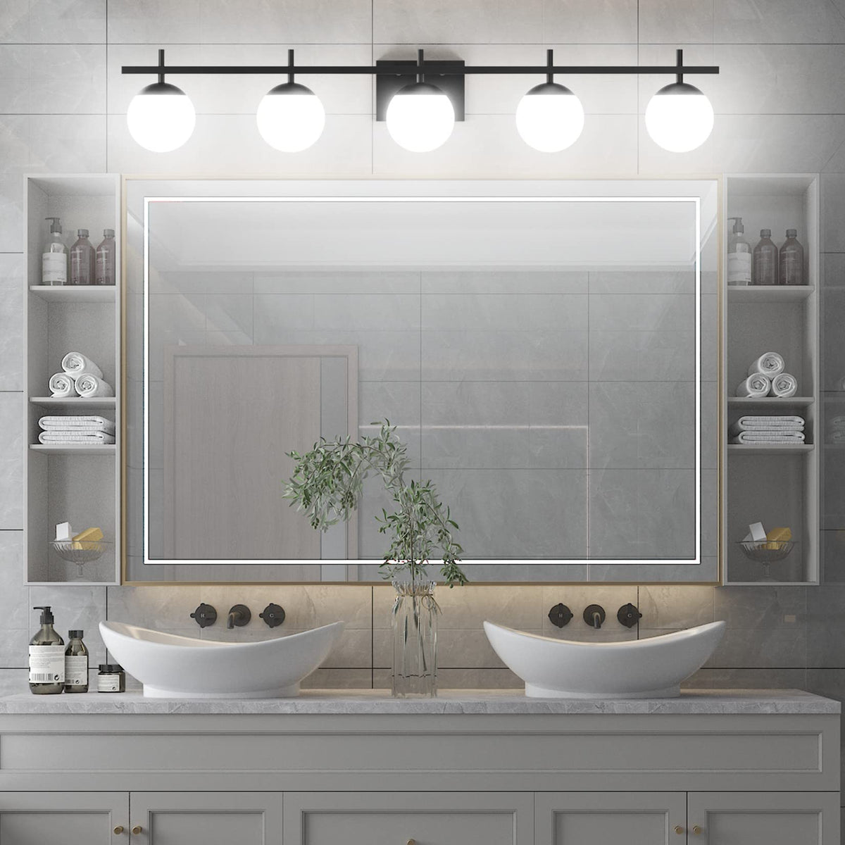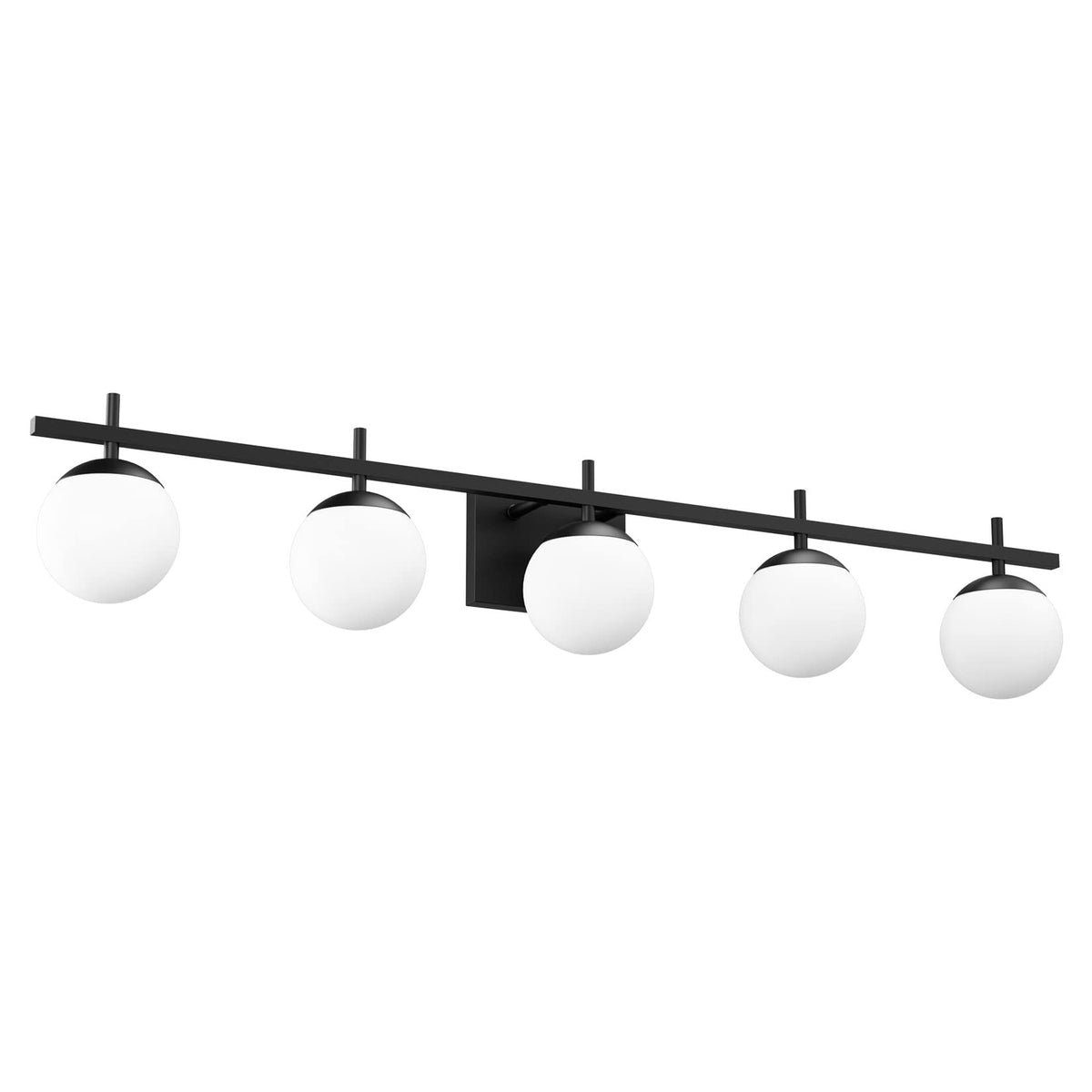 Ralbay Mid Century Modern Vanity Lights Black 5-Light Milky Glass Mid Century Black Bathroom Vanity Lights Over Mirror, Matte Bl