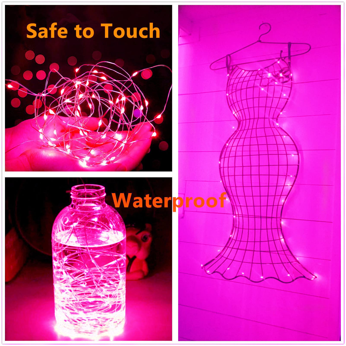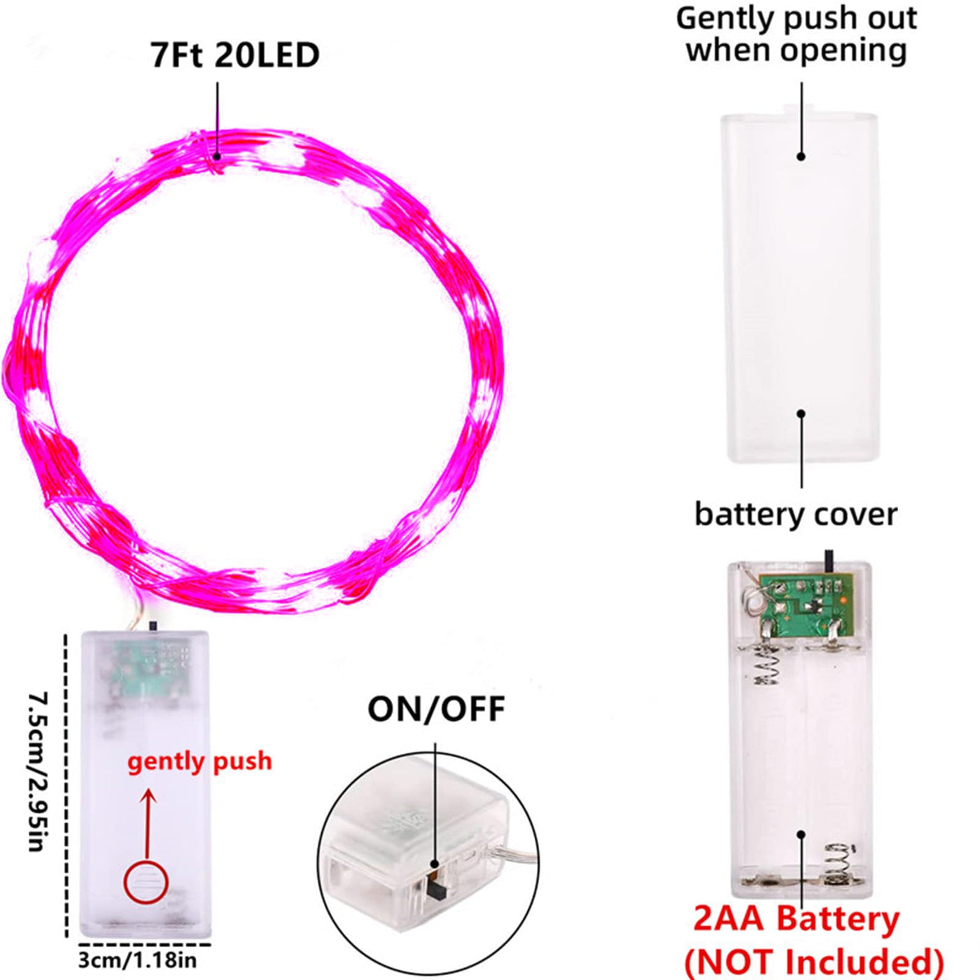Mini Pink Fairy Lights Battery Operated 7Ft 20LED Silver Wire Fairy String Lights for Christmas Halloween Wedding Party Home Holiday Decor Room Decoration