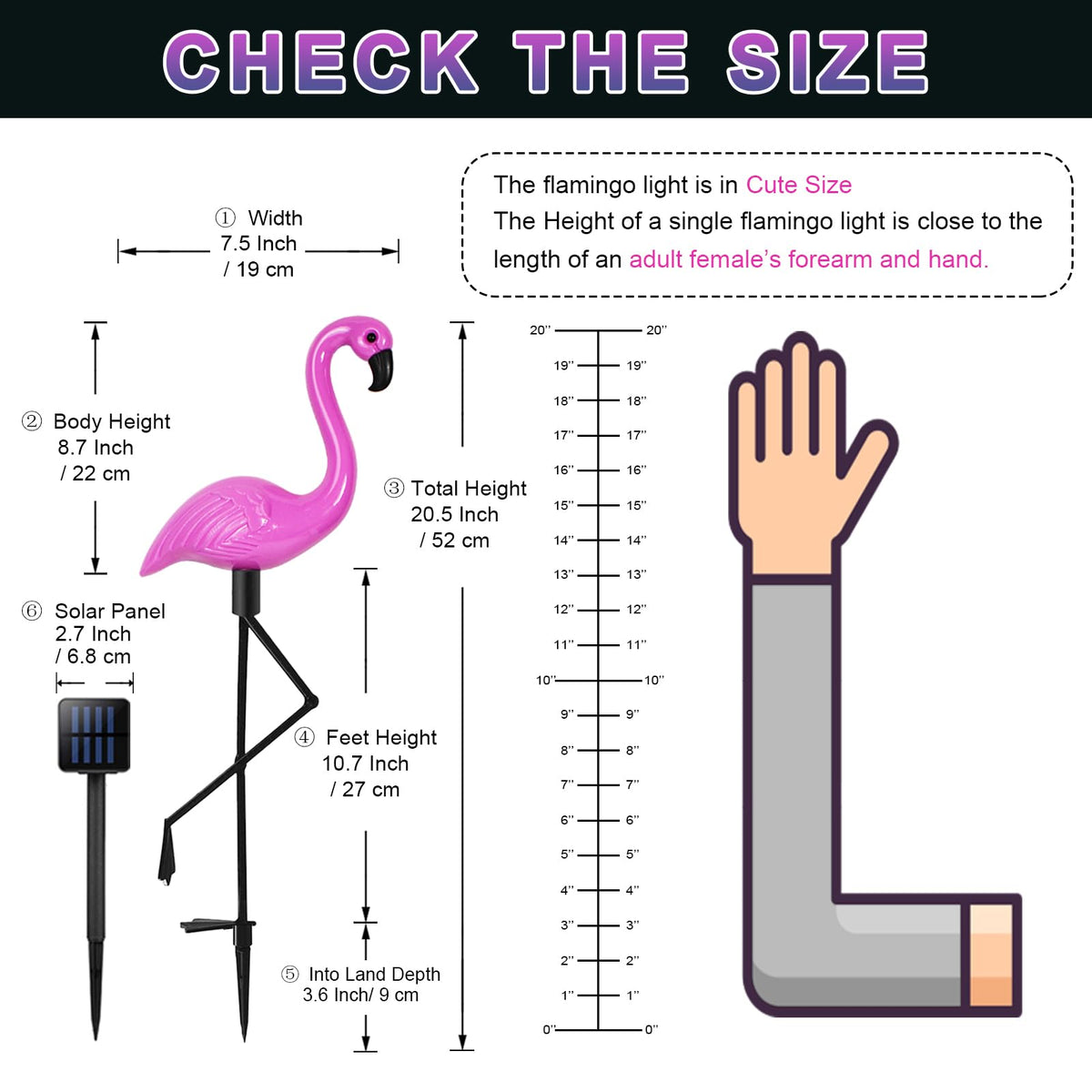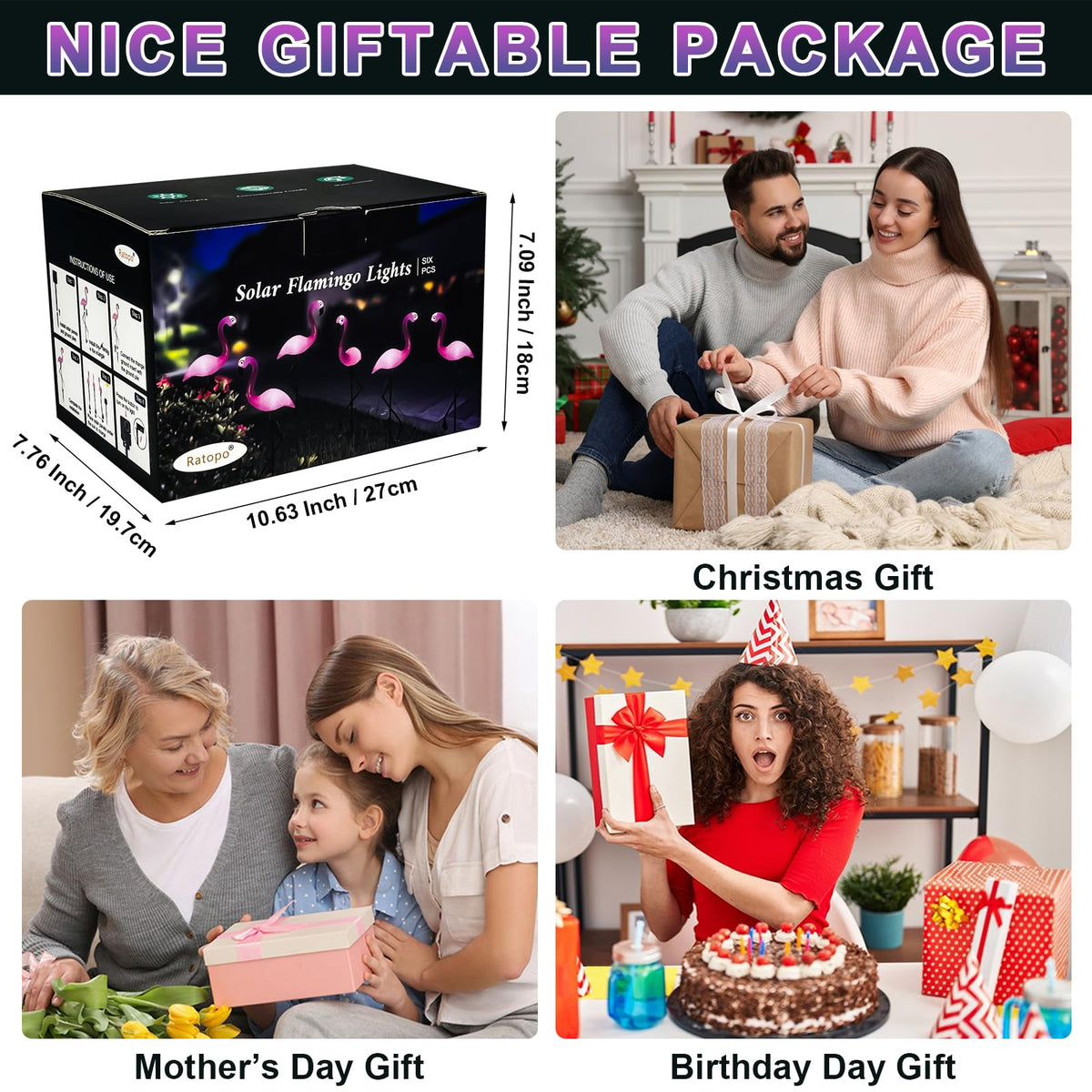Ratopo Solar Flamingo Light 6 Pcs, Waterproof Solar Garden Lights Outdoor Decor, Pink Flamingo Garden Decor, Birthday Christmas New Home Gift, For Yard Lawn Walkway Pathway