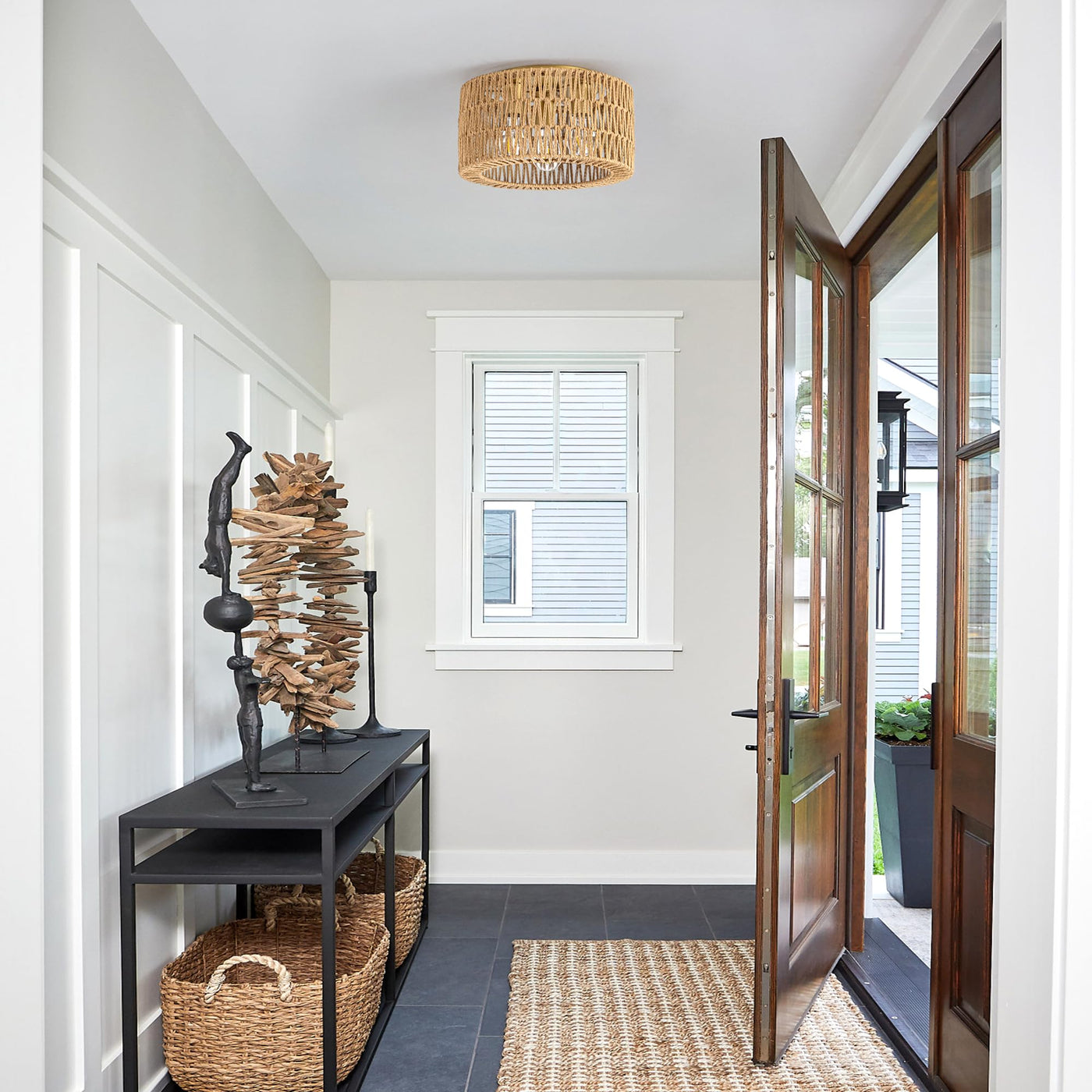 Q: Where can I use the Rattan Ceiling Light Fixture in my home?A: This versatile ceiling light is perfect for a variety of settings, including bedrooms, hallways, entryways, kitchens, and dining areas, especially in bohemian or farmhouse-style decor.